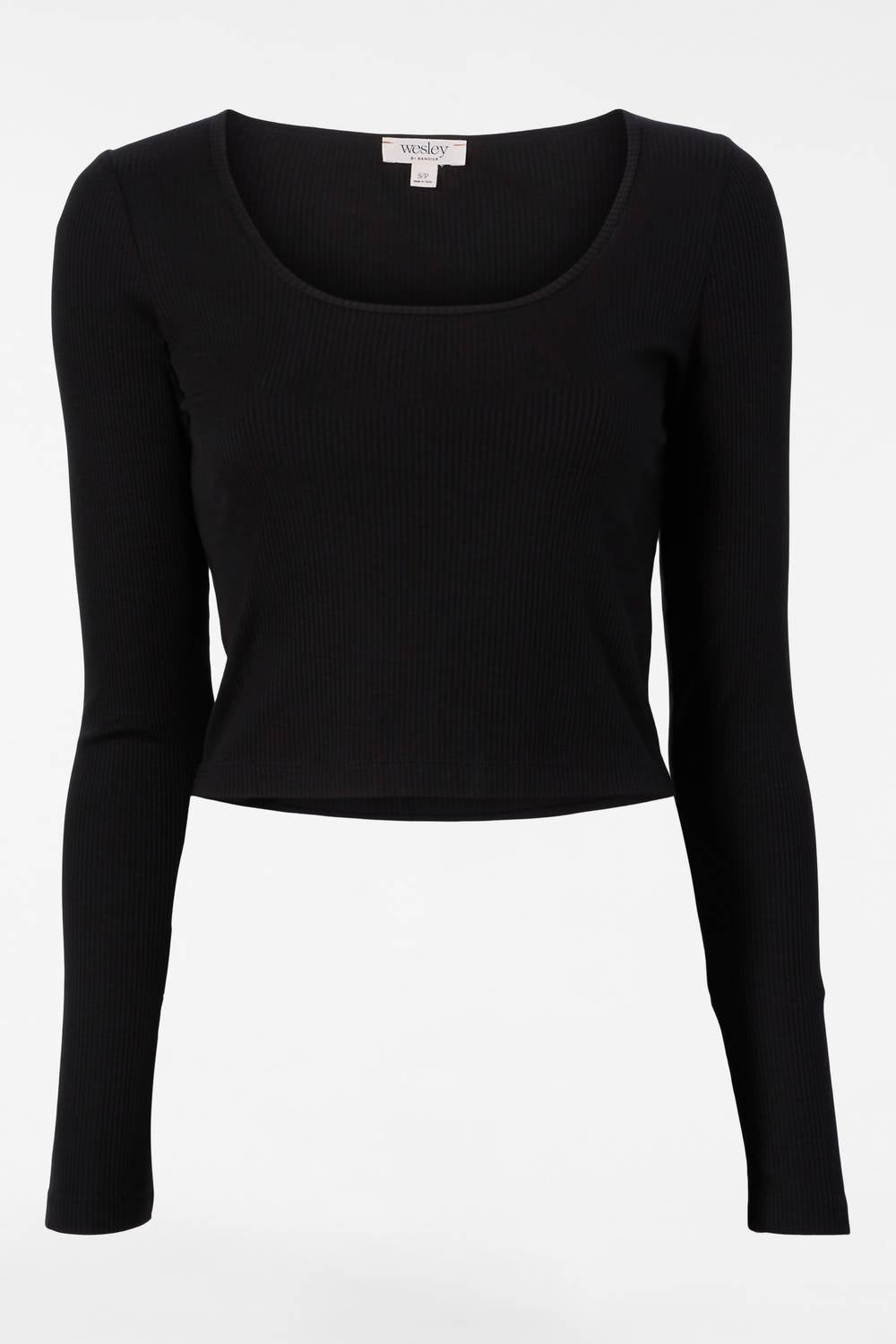 Bandier - Rivington Ribbed Long Sleeve Scoop Neck Crop Top