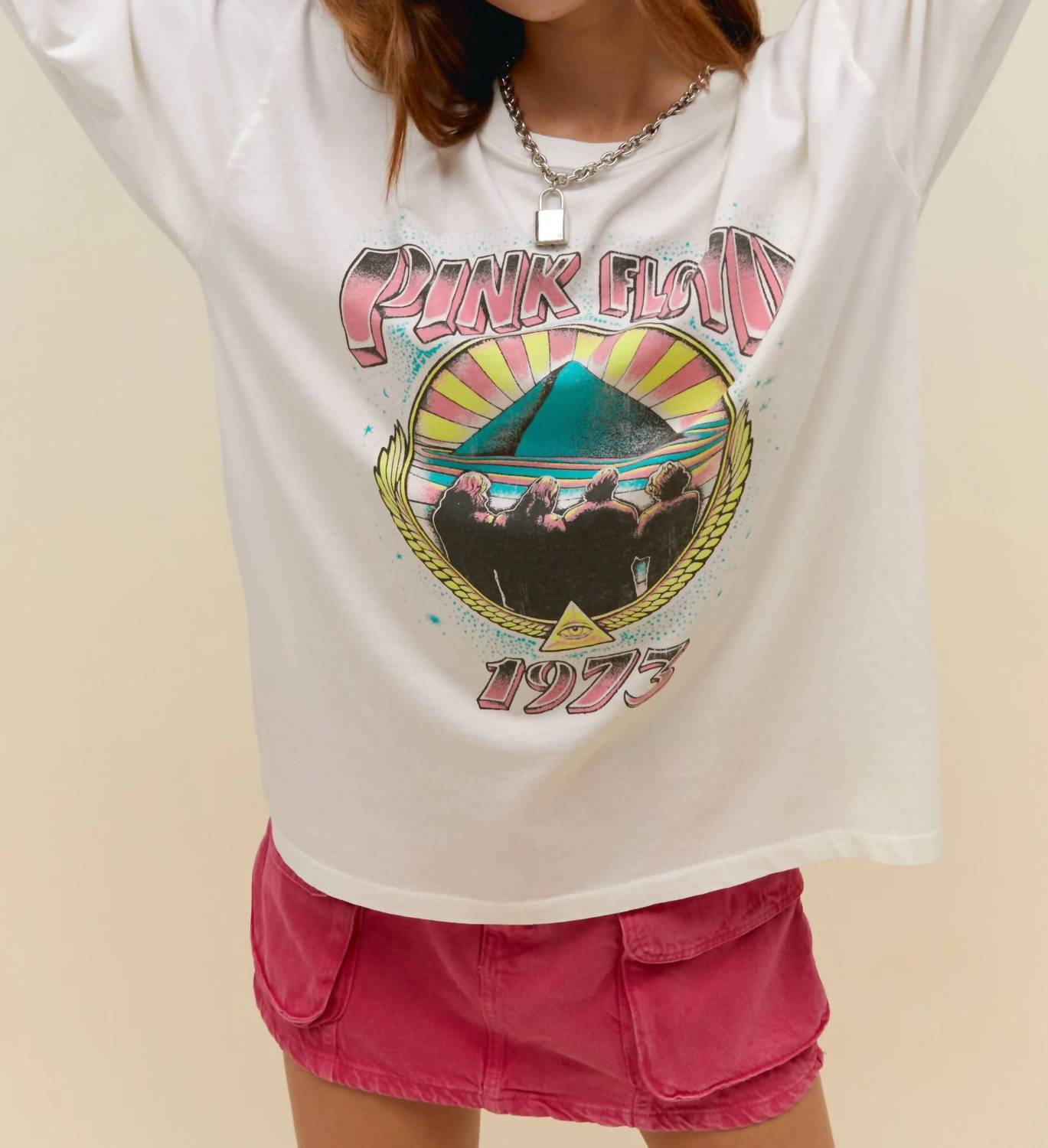 Great fit, cute design, soft fabric. You'll love everything about this long sleeve tee. This striking tee features long sleeves and a crewneck design, made from 100% cotton, offering luxury feel and perfect drape. The piece measures a garment length of 26.5" and comes with a roomy fit, complemented by ladder stitch hems. Manufactured in Los Angeles, it embodies the spirit of Pink Floyd with a pull-on closure for effortless style.
