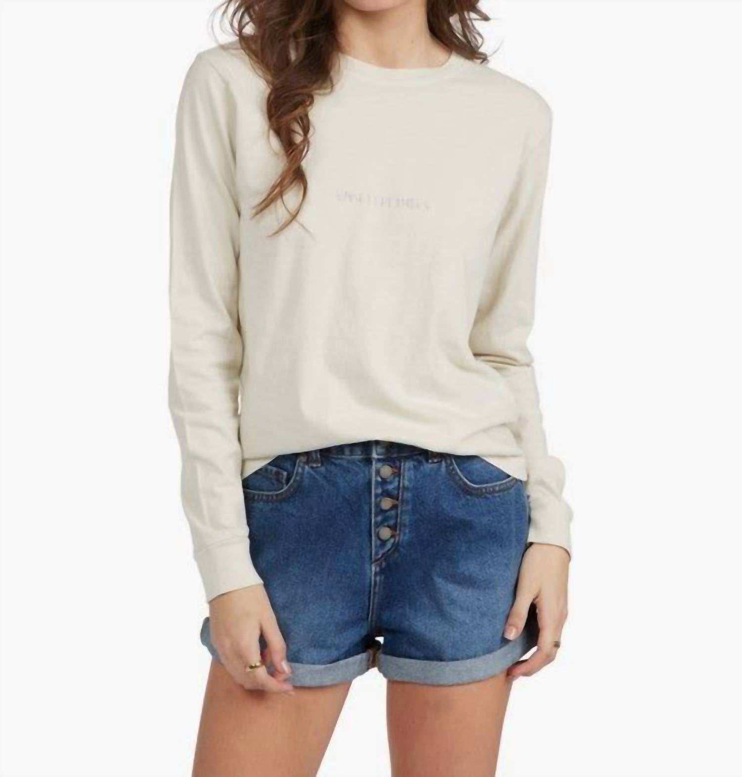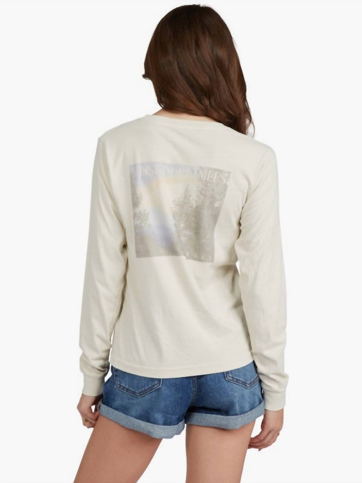A long sleeve top you can wear with denim, skirts, well... just about anything! Embrace streetwear style with the Mountain Love Tee by ROXY, a chic option for spring occasions. Designed with long sleeves and a classic crewneck, this women's graphic tee in white is perfect for a birthday celebration or casual outing. Closure: Pull-on style. Originating from a design ethos that values comfort and flair, it offers simplicity in maintenance, with no specific care instructions provided.