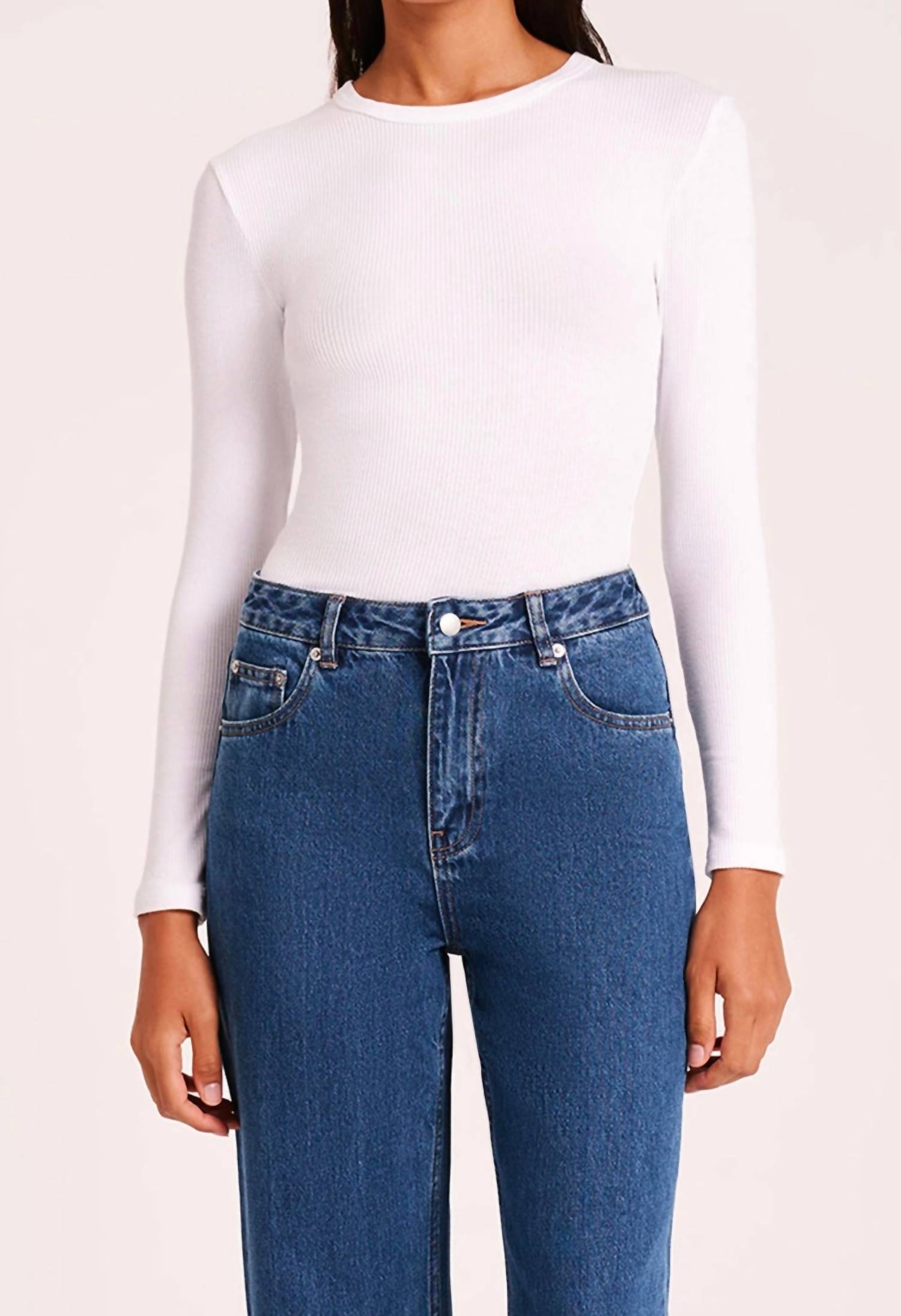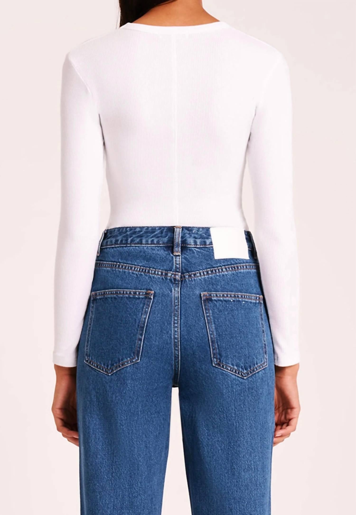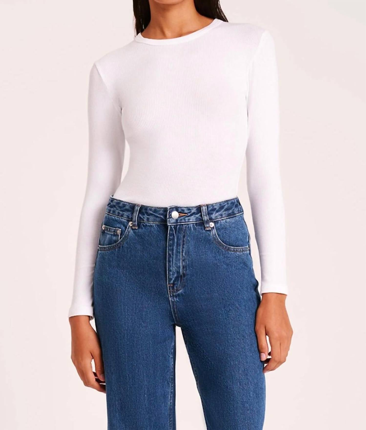 A long sleeve top you can wear with denim, skirts, well... just about anything! Introducing the Women's Organic Rib Top by Nude Lucy, a must-have in versatile white for effortless elegance. This solid long sleeve tee features a classic crewneck design and is crafted from high-quality organic cotton. Its pull-on closure adds to the simplicity and ease of wear, seamlessly blending comfort with style. Ideal for boho chic vacations, this piece adds an elevated touch to any spring wardrobe.