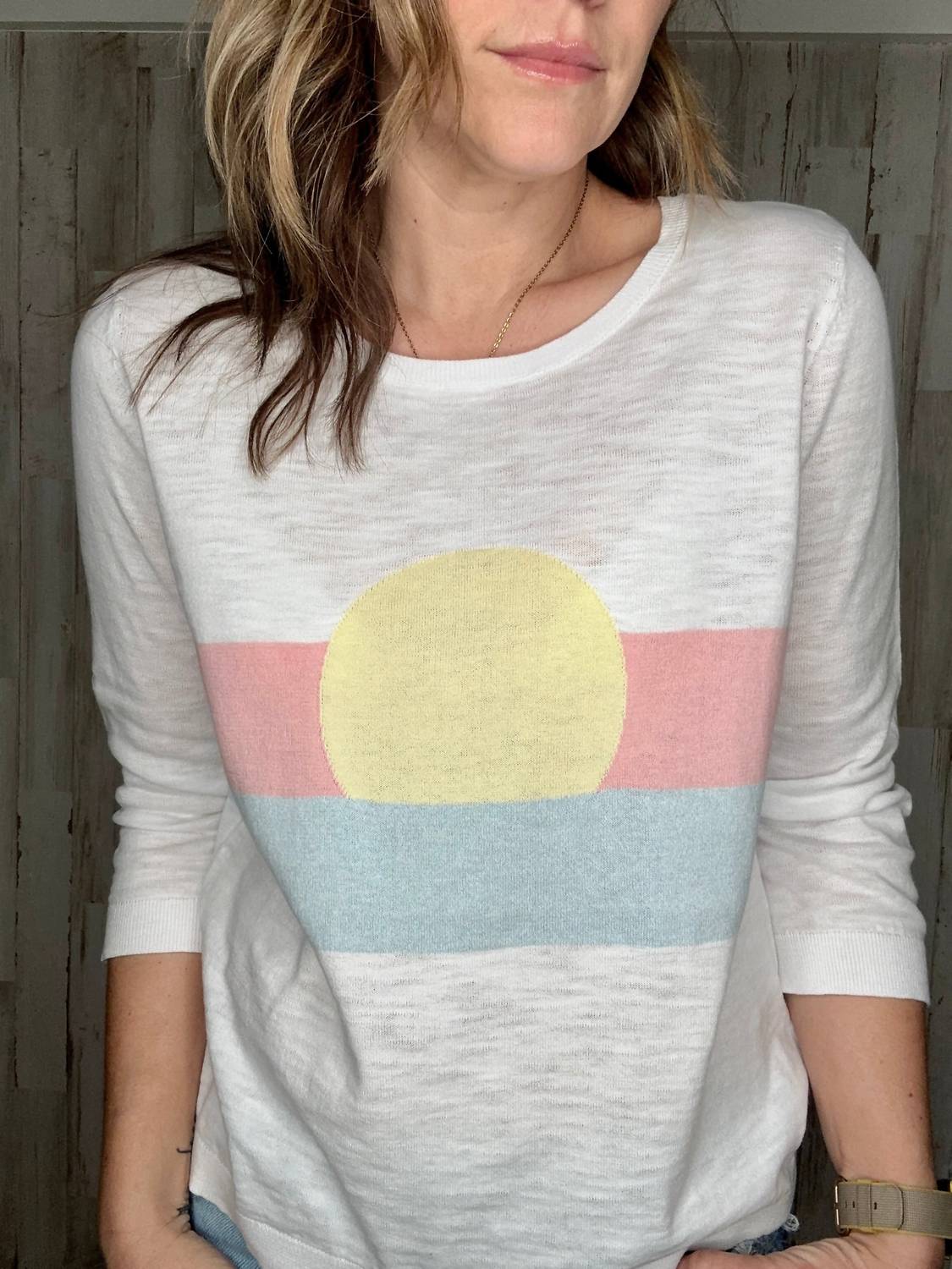 Great fit, cute design, soft fabric. You'll love everything about this long sleeve tee. \This women's tee features three-quarter sleeves and a classic crewneck, crafted from 100% cotton for premium comfort. Designed for easy wear with a pull-on closure, it's perfect for versatile styling. Care Instructions: Hand wash cold, lay flat to dry, and dry clean if needed.