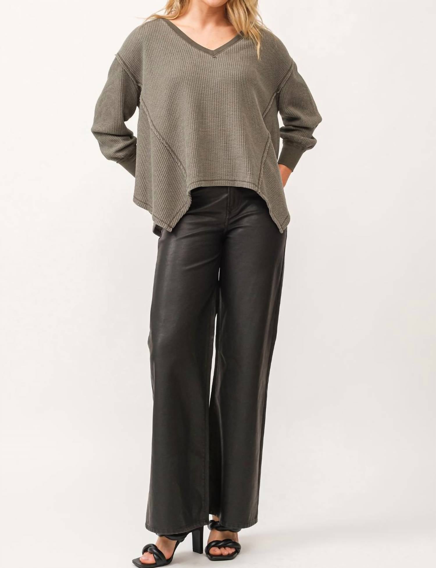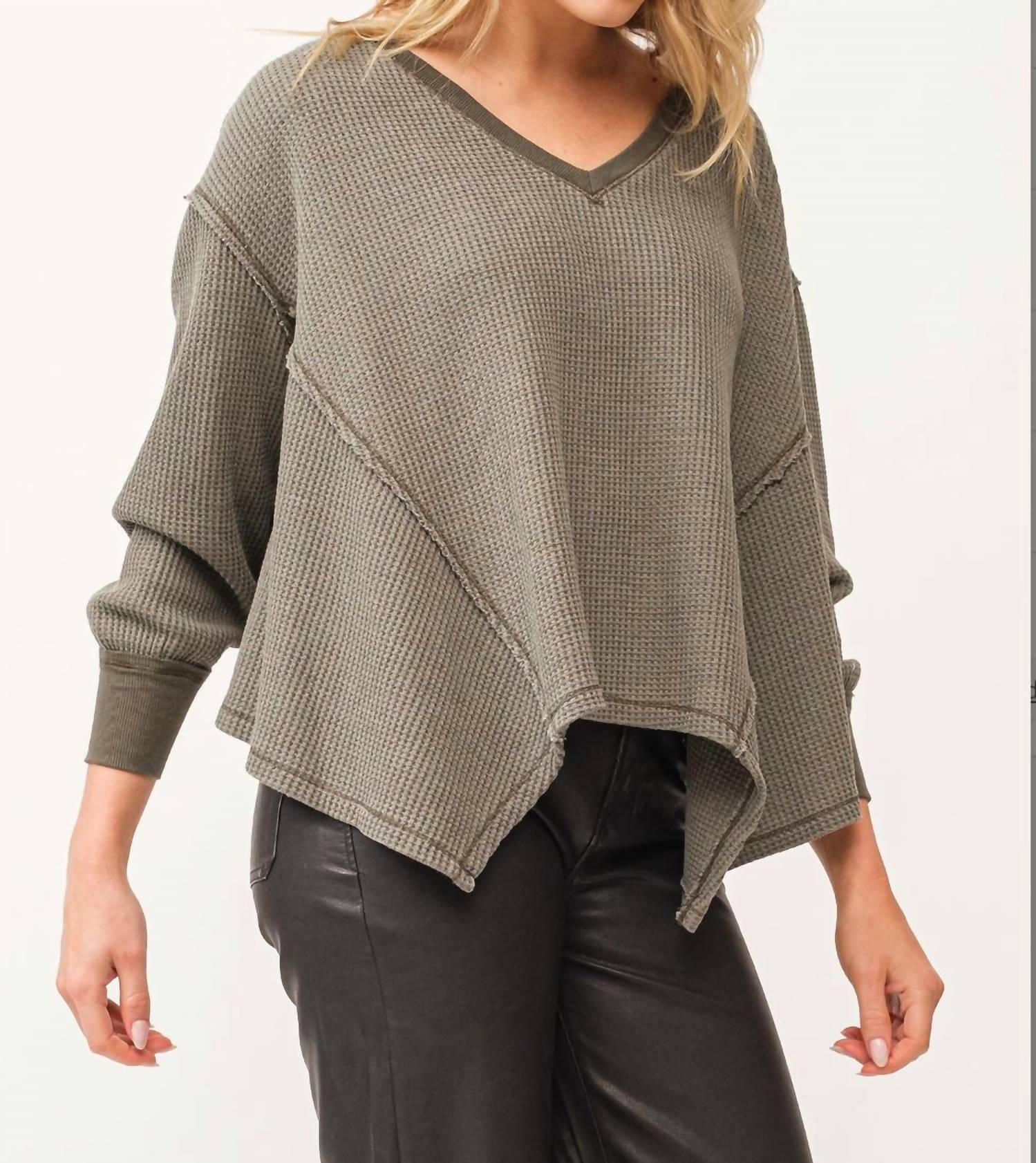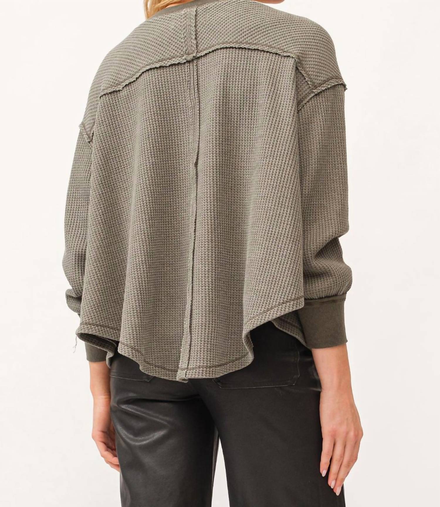 The perfect long sleeve tee that goes with just about anything. Elevate your casual ensemble with the Mira Thermal Top by DEAR JOHN DENIM, rendered in a chic dark olive hue. Crafted for women, this long sleeve tee combines style and comfort with a textured polyester finish and a flattering V-neckline. The pull-on closure ensures ease of wear, making it a versatile addition to any wardrobe. Care: Machine wash and tumble dry for effortless maintenance.