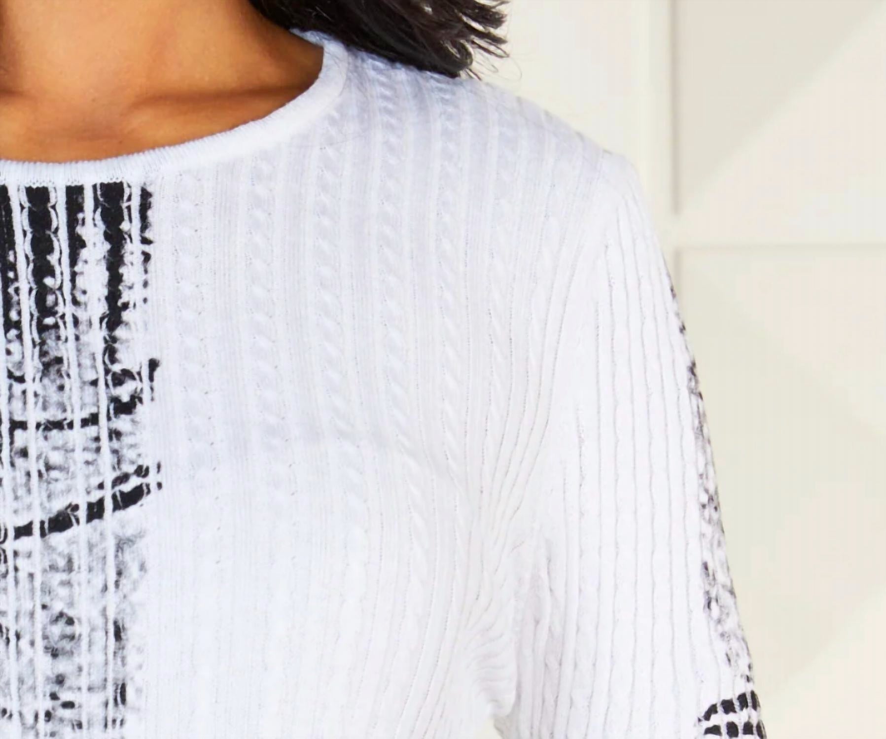 A long sleeve top you can wear with denim, skirts, well... just about anything! The Scoop Neck Textured Top by Angel Apparel embodies boho chic style in a long sleeve design perfect for a holiday party. Made from a comfortable Cotton/Acrylic blend, it hits right at the hips for a flattering fit. This black and white textured top is imported and features a scoop neck with a convenient pull-on closure. Care for this piece with a delicate hand wash or choose to dry clean for the best results.