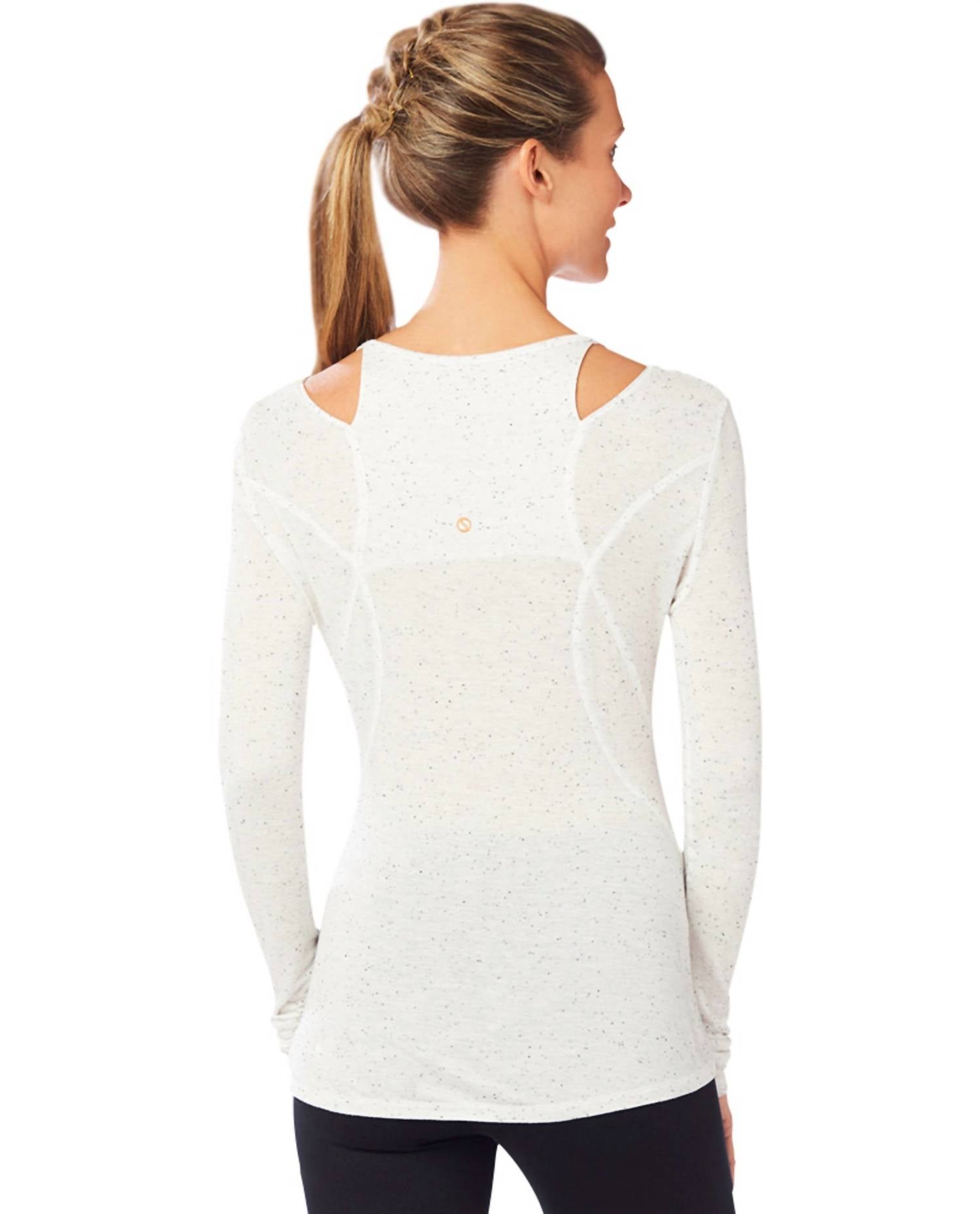 This South Street Long Sleeve Tee features a V-neckline and cut-out shoulder design with feminine seams. Made from 65% rayon and 35% polyester, it offers a soft, comfortable fit with a pull-on closure.