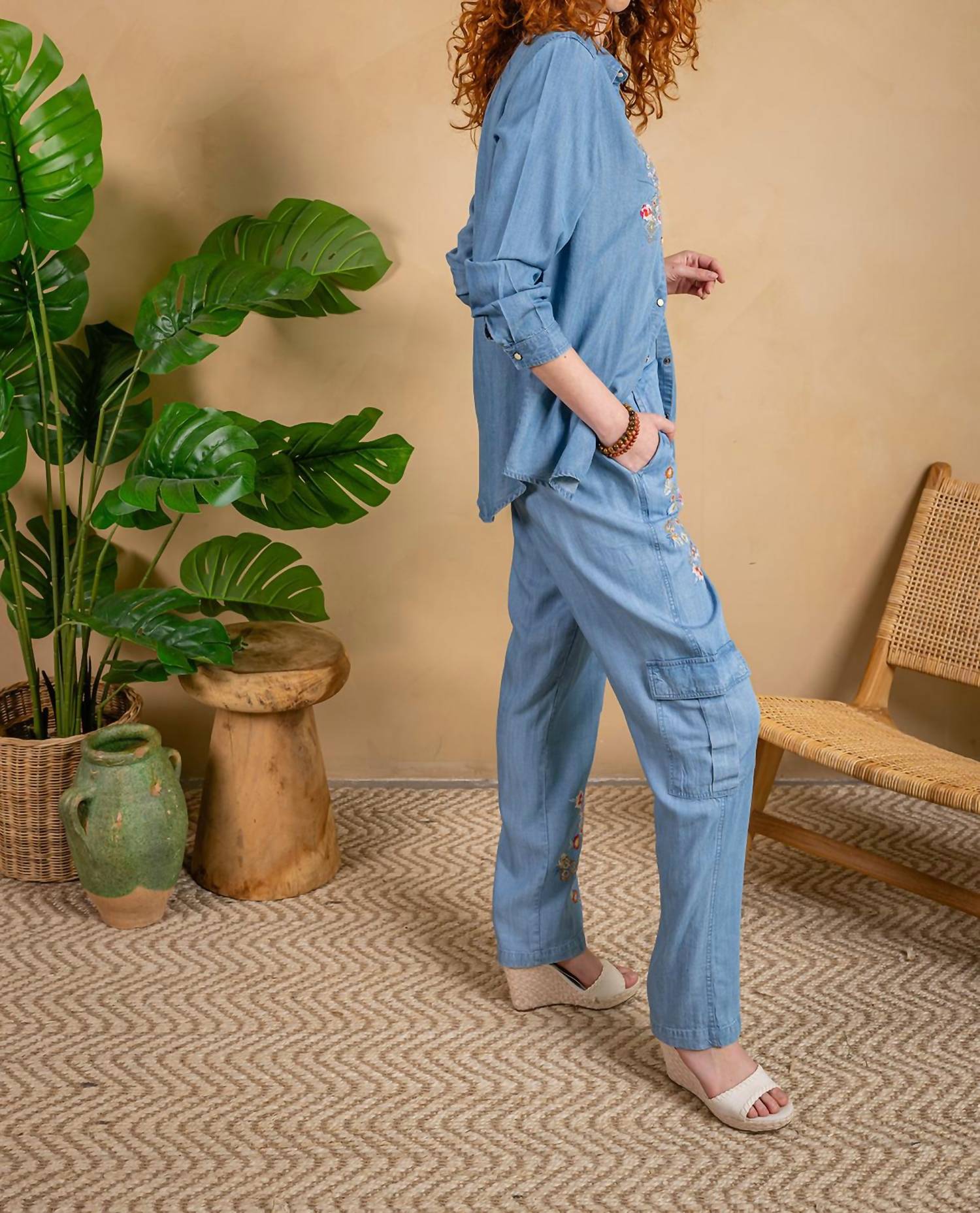 The perfect long sleeve tee that goes with just about anything. Introducing the Embroidered Tencel Big Shirt by PAPARAZZI, an elegant addition to your wardrobe in a light wash hue. Crafted from 100% silky-soft Tencel, this long sleeve shirt features delicate floral embroidery that adds a refined, feminine touch. It boasts an oversized, relaxed shape perfect for versatile layering from day to evening. Closure: Snap closure. Care: Machine wash.