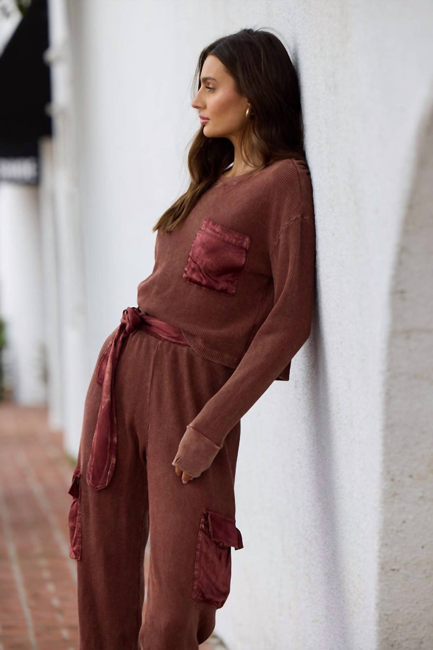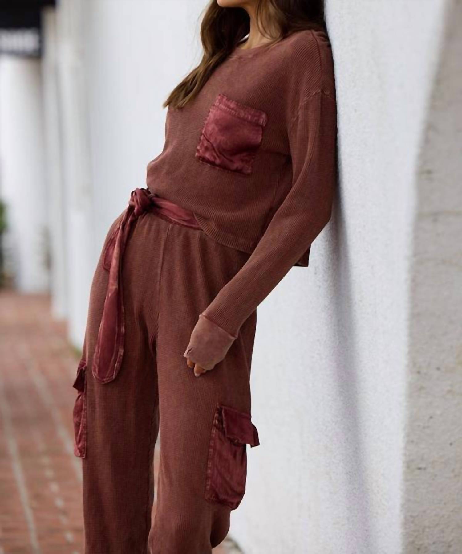 A long sleeve top you can wear with denim, skirts, well... just about anything! Discover the Damon Pocket Tee by LAmade, a cozy yet stylish addition to your wardrobe in a rich color. This women's long sleeve tee is crafted from 100% cotton with a chunky knit thermal texture, offering both warmth and a unique, textured pattern. Featuring a feminine slouchy silk pocket, this piece is expertly cropped for modern appeal. Made in Los Angeles, it boasts a classic crewneck and a convenient pull-on closure. For optimal care, hand wash and line dry.