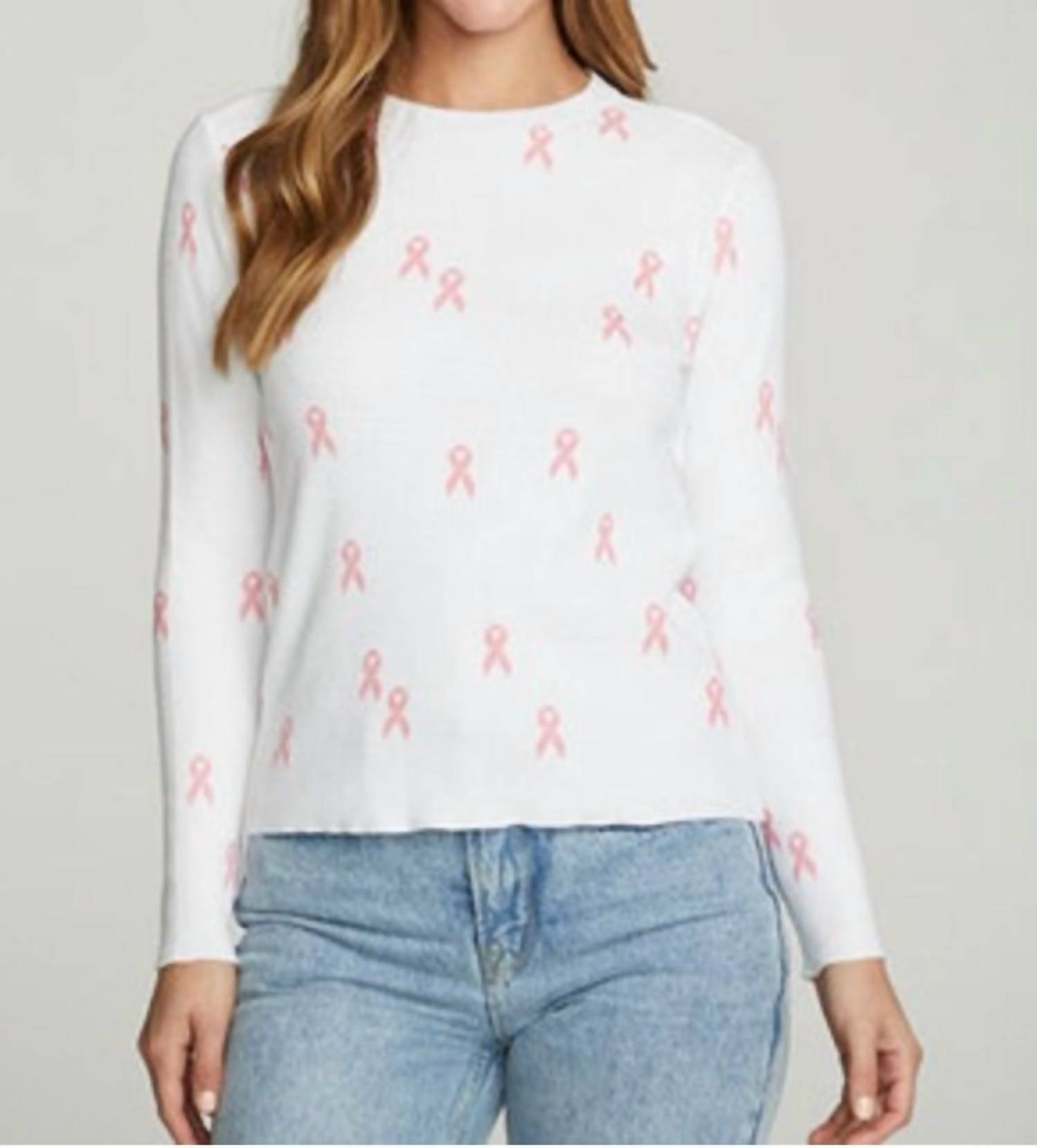 Great fit, cute design, soft fabric. You'll love everything about this long sleeve tee. Celebrate a cause with the Breast Cancer Awareness Waffle Tee by Chaser, presented in a soft white and pink polka dot design. This long sleeve tee is crafted from a comfortable cotton blend and features a classic crewneck. Pull-on style for easy wear. Machine wash for effortless maintenance. 50% Cotton, 50% Polyester.