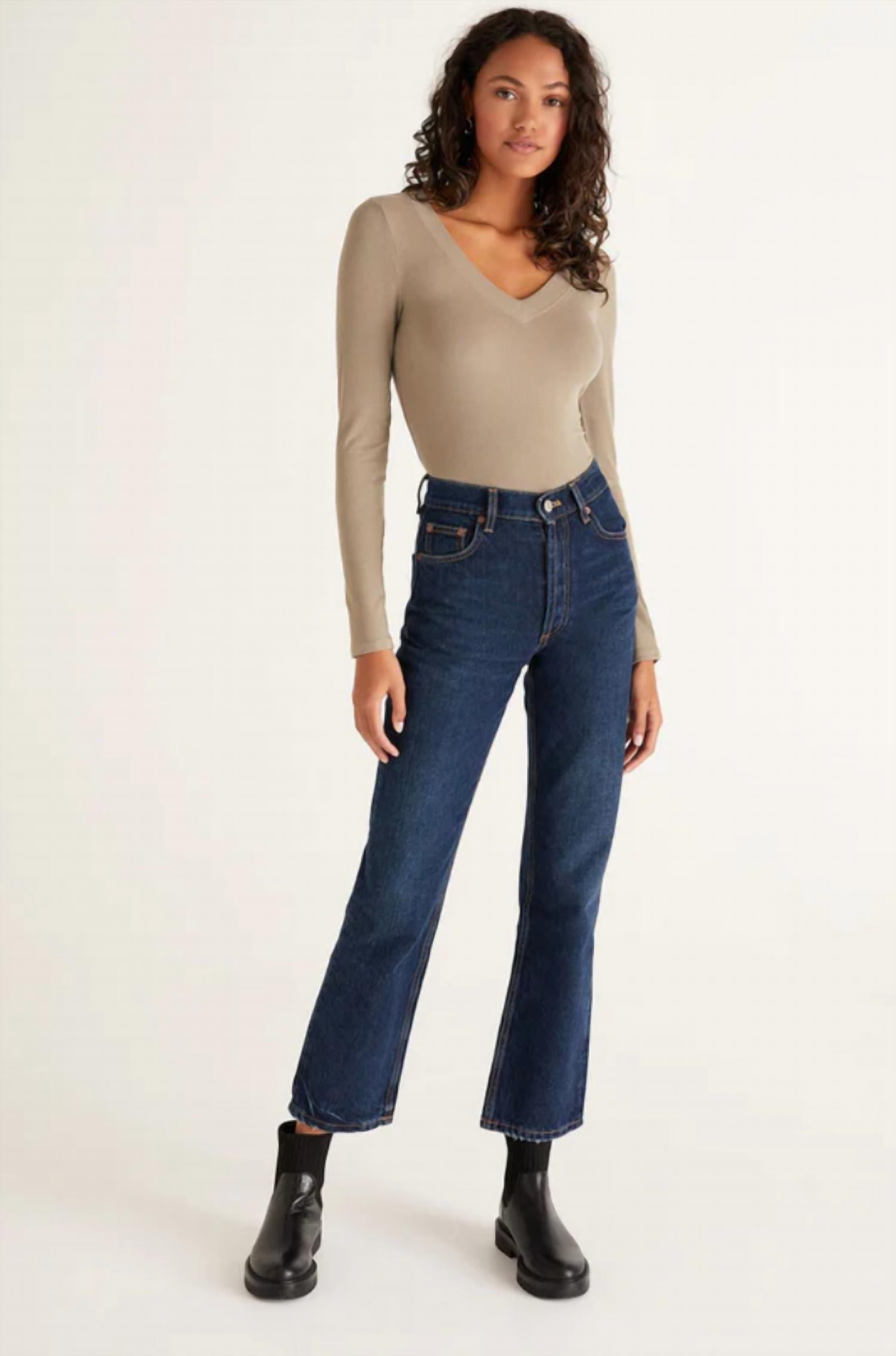 An instant fave! The Izzy rib v-neck top is that ideal layering piece for the season. Made using our softly textured rib fabric with the perfect amount of stretch, this piece features a stylish v-neckline, and side slits at the hem and is easy to wear tucked in or out. Machine wash cold, turn inside out, gentle cycle, wash dark color separately, do not bleach, tumble dry low, warm iron if needed. Rayon spandex 2x2 rib: 95% rayon 5% spandex. Slim fit. The model is wearing a size S.