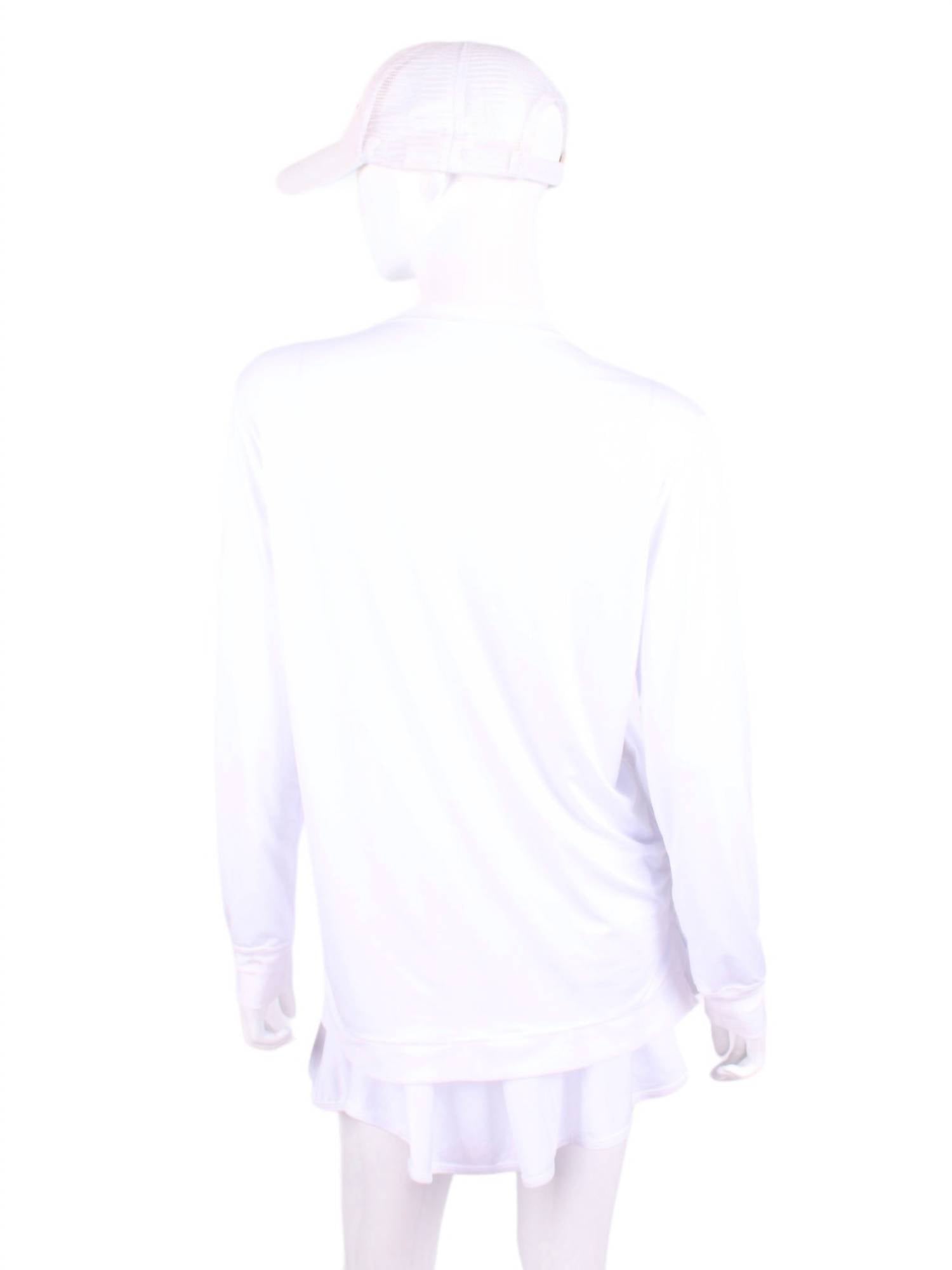 Great fit, cute design, soft fabric. You'll love everything about this long sleeve tee. Introducing the Love Love Tennis Women's Long Sleeve Very Vee Tee, a sleek and stylish addition to your athleisure wardrobe. Designed with a flattering V-neck and patterned with striking black and red mesh accents, this top adds a seductive yet sweet touch to your game day look. Featuring long sleeves for added coverage, this tee is perfect for those who prefer to show off a little while keeping it classy. This pull-on style top is tailored for activewear and, keeping with its sleek design, should not be washed.