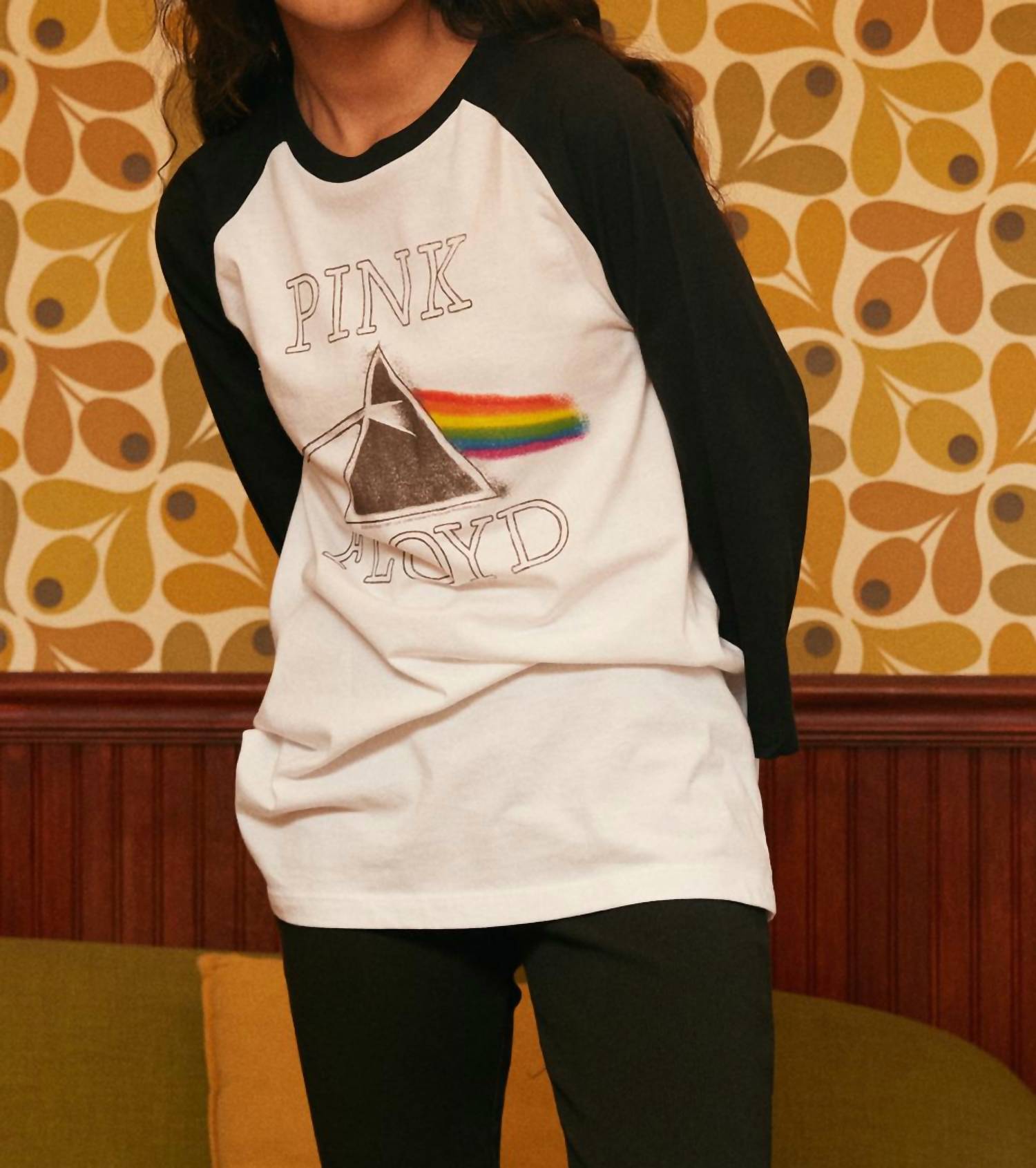 The perfect long sleeve tee that goes with just about anything. Introducing the Pink Floyd Long Sleeve Baseball Tee by People of Leisure, a tribute to iconic rock in effortless style. This tee, crafted from 100% organic cotton, features long sleeves and Pink Floyd’s iconic logo, ideal for layering or as a standout piece. Ethically made in Los Angeles, CA, it comes in classic black and white for a timeless look. Closure is a simple pull-on design, with care instructions for machine washing cold/warm and tumble drying on low. Available in sizes M-XXL for a perfect fit.