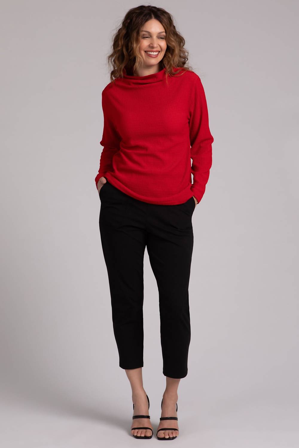 A long sleeve top you can wear with denim, skirts, well... just about anything! This funnel top combines cozy texture with timeless style, crafted from soft popcorn waffle knit in a blend of 98% polyester and 2% spandex. Designed with a funnel neckline lined in smooth jersey and finished with full-length sleeves, it offers a classic fit that’s both comfortable and versatile. A chic staple made for effortless everyday wear.