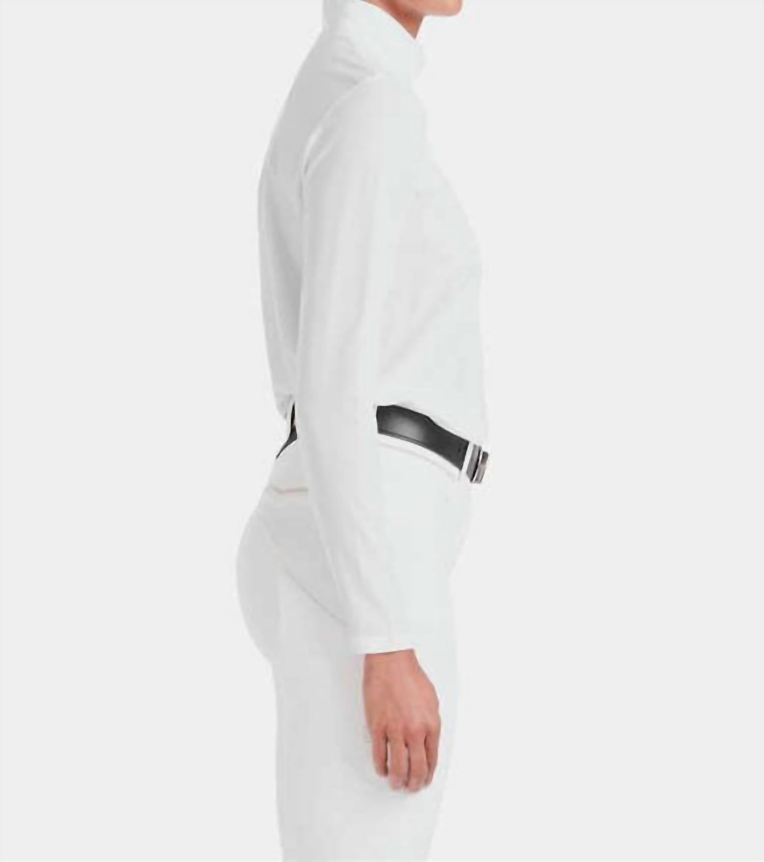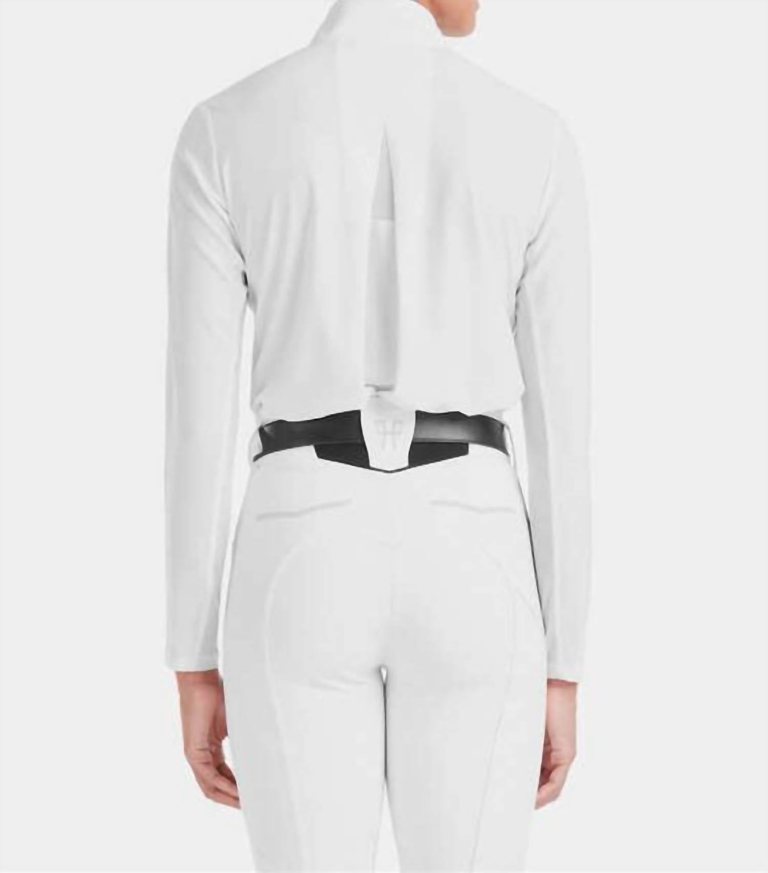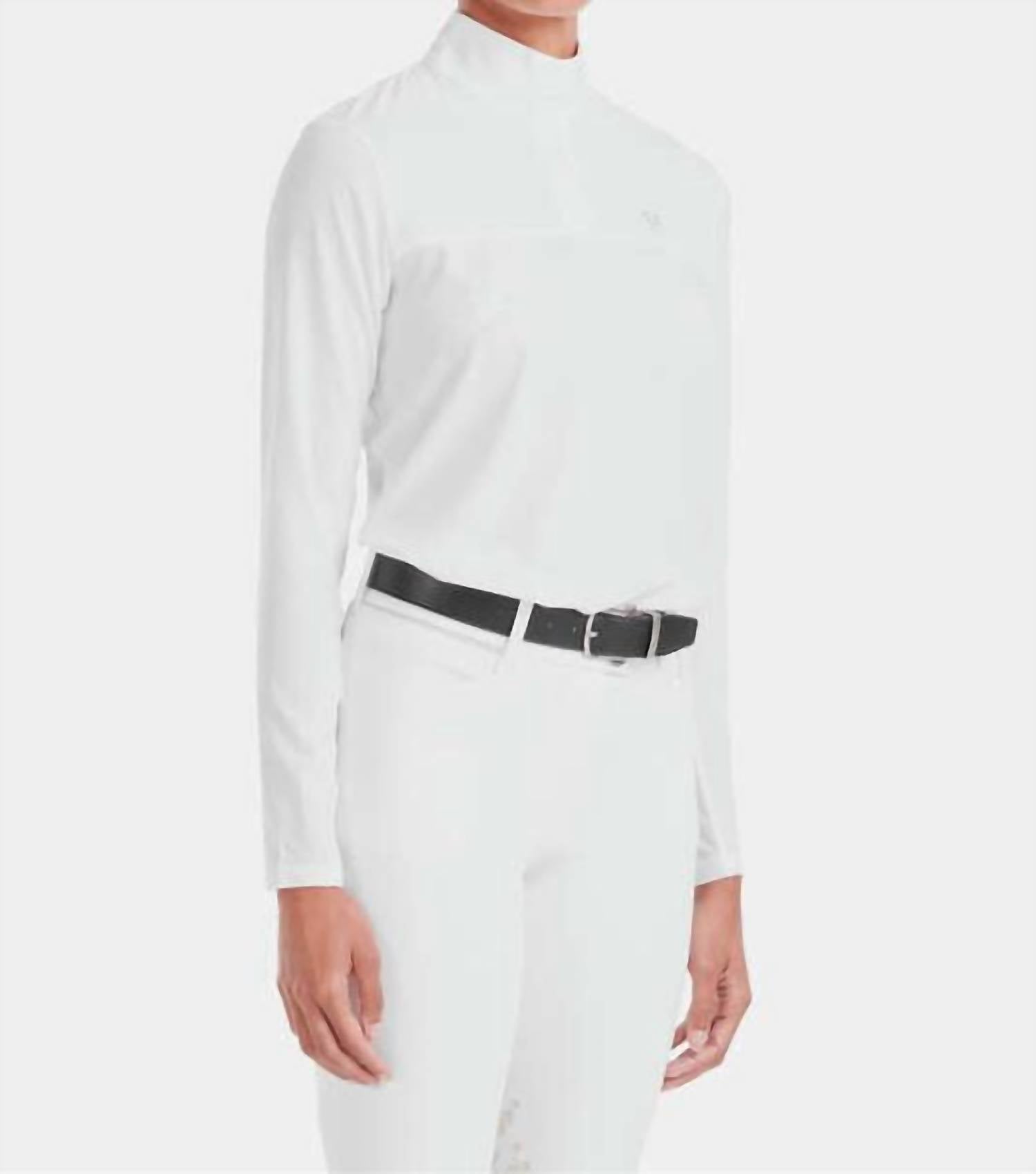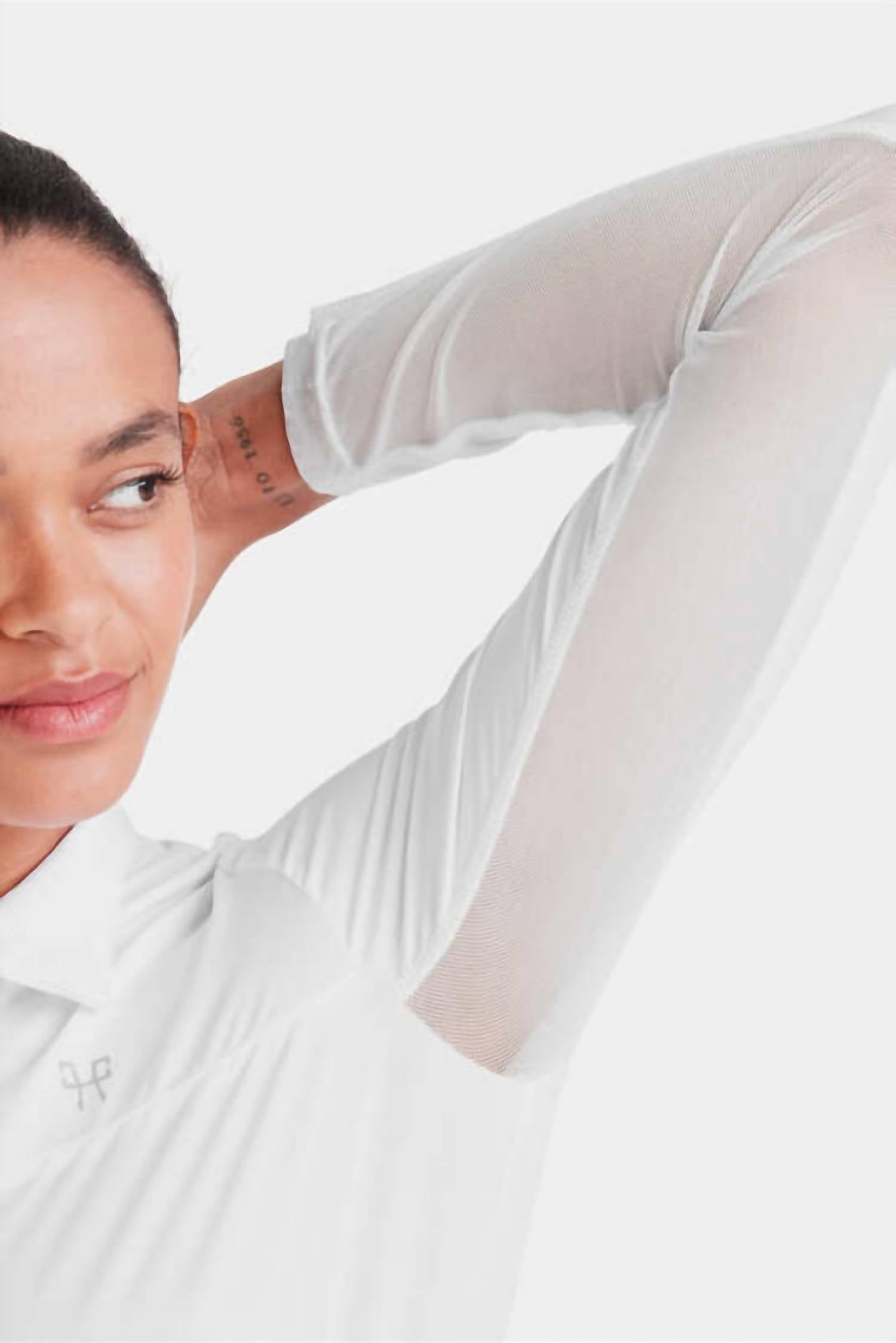 A long sleeve top you can wear with denim, skirts, well... just about anything! Stay protected and comfortable with the Sunrise Long Sleeve Sun Shirt by Horse Pilot, perfect for female athletes during sunny workouts. Designed with lightweight, breathable fabric featuring long sleeves, this shirt offers exceptional moisture-wicking abilities complemented by mesh inserts for heat evacuation. Crafted from a unique blend of materials including polyester and spandex, recognized by the OEKO-TEX® Standard 100, it provides SPF 50+ UV protection. Closure: Discreet snap closure. Care: Machine wash and drip dry for quick drying on a wide hanger.