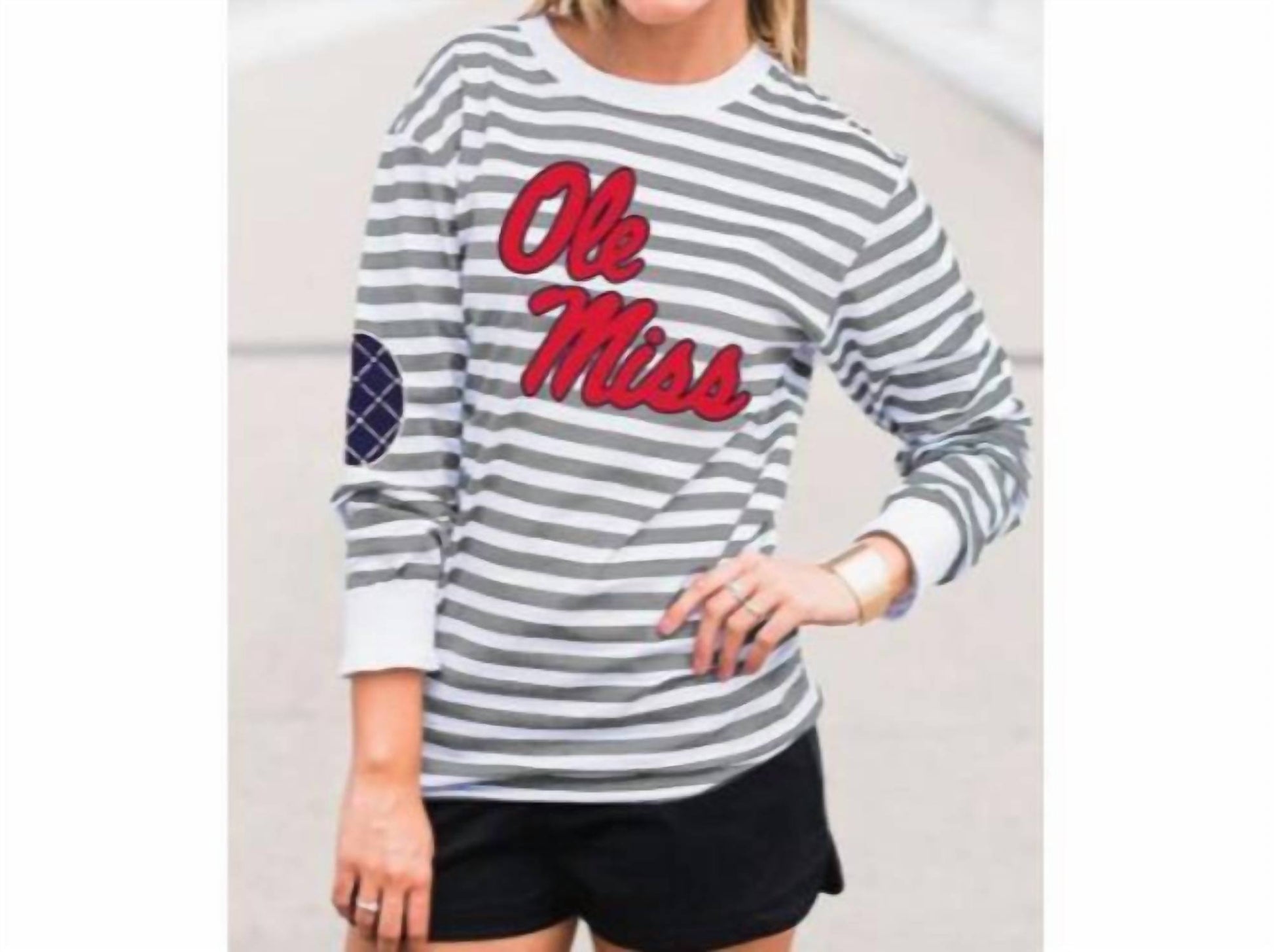 Gameday Couture - Ole Miss Striped Elbow Patch Tee