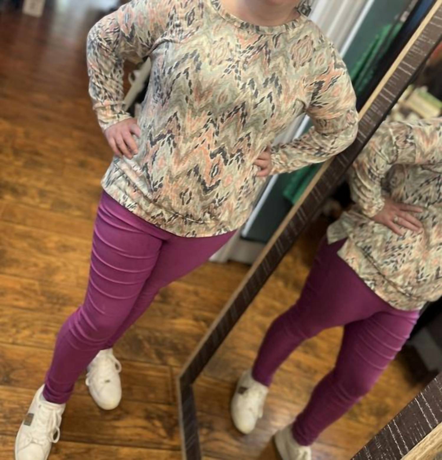 Great fit, cute design, soft fabric. You'll love everything about this long sleeve tee. Effortless elegance meets everyday comfort in our Dear Scarlett Long Sleeve Beige Multi Banded Collar Top — the perfect piece to brighten up your wardrobe! Featuring a beautiful blend of neutral beige tones with vibrant pops of color in a multi-print design, this top is a true statement-maker that’s still incredibly wearable. The banded collar and split neckline create a flattering, polished look, while the long sleeves with roll-tab options give you versatility for every season. Crafted from Dear Scarlett’s signature buttery soft, wrinkle-resistant fabric, this top is as functional as it is stylish. Lightweight and breathable, it’s ideal for layering under a jacket or cardigan in cooler months or wearing on its own as a standout piece in warmer weather. The flowy silhouette flatters all body types, providing easy movement and a comfortable, relaxed fit you’ll love wearing all day long. Pair this gorgeous top with your favorite denim or dress pants for an effortlessly chic outfit. Whether you’re heading to the office, running errands, enjoying a lunch date, or shopping downtown, this is the kind of piece that brings both style and confidence to your day. Features: • Flattering banded collar with split neckline Beautiful beige multi-print pattern with vibrant accents • Buttery soft, wrinkle-resistant fabric • Lightweight and breathable for all-day comfort • Roll-tab long sleeves — wear full-length or rolled up • Flowy, relaxed fit for all body types