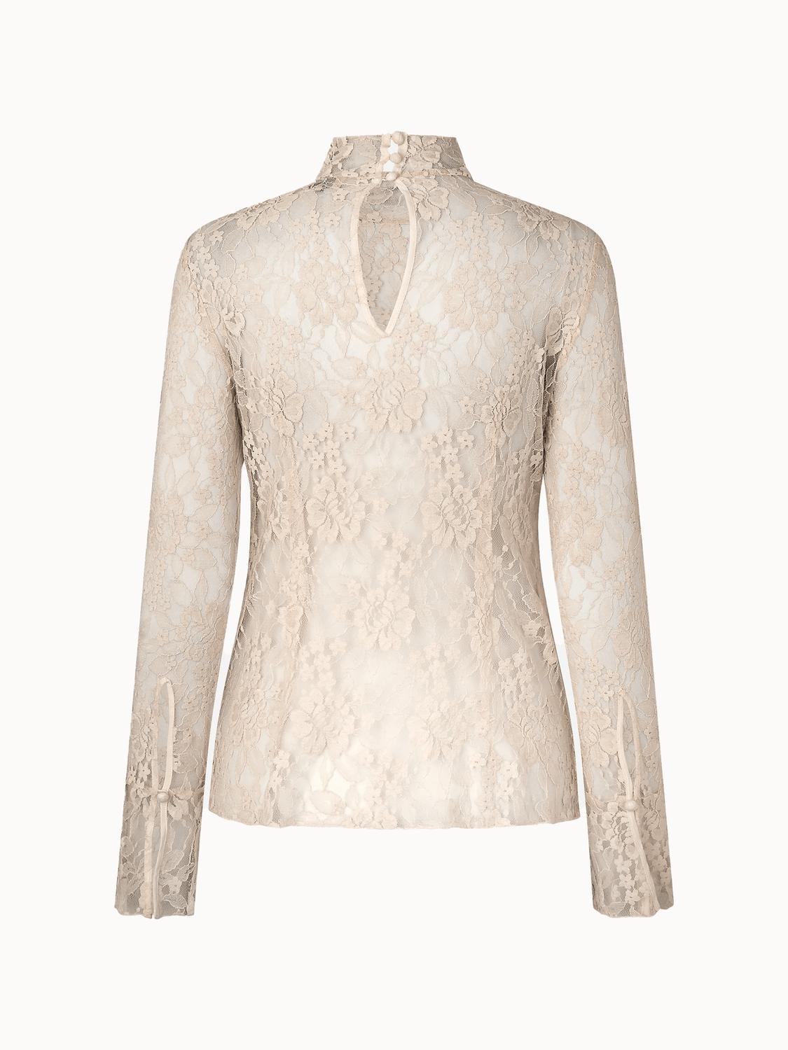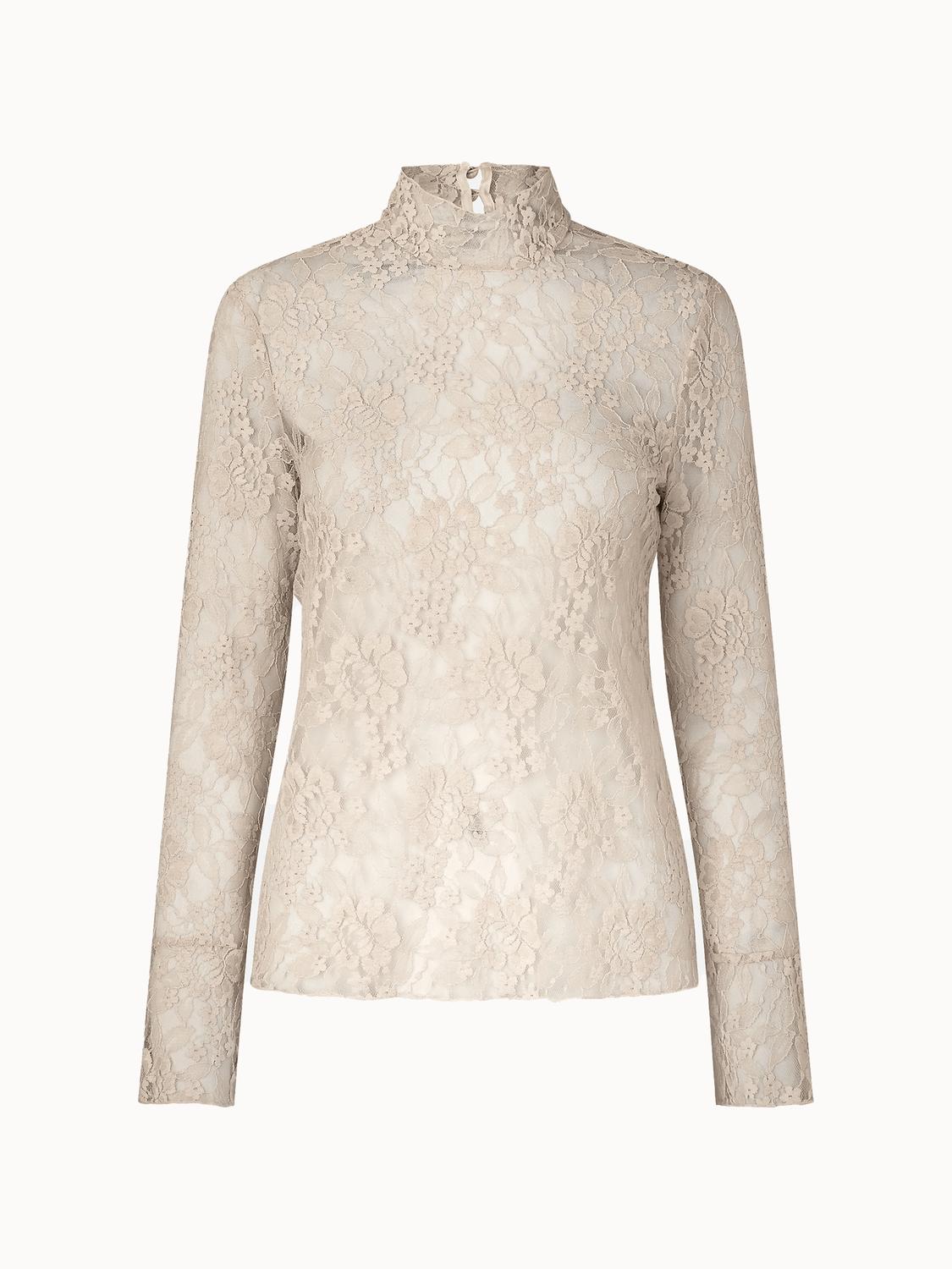 A long sleeve top you can wear with denim, skirts, well... just about anything! Elevate your wardrobe with the Meena Blouse by BAUM UND PFERDGARTEN, an exceptional piece in a chic White Sand hue. This women's blouse features long, slightly flared sleeves and a sophisticated turtleneck design. Crafted from 69% Viscose and 31% Polyamide, it showcases delicate buttons at the wrists and a full button closure. For care, please dry clean this textured, vacation-ready top.