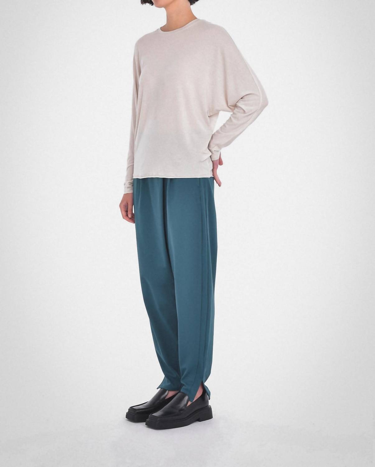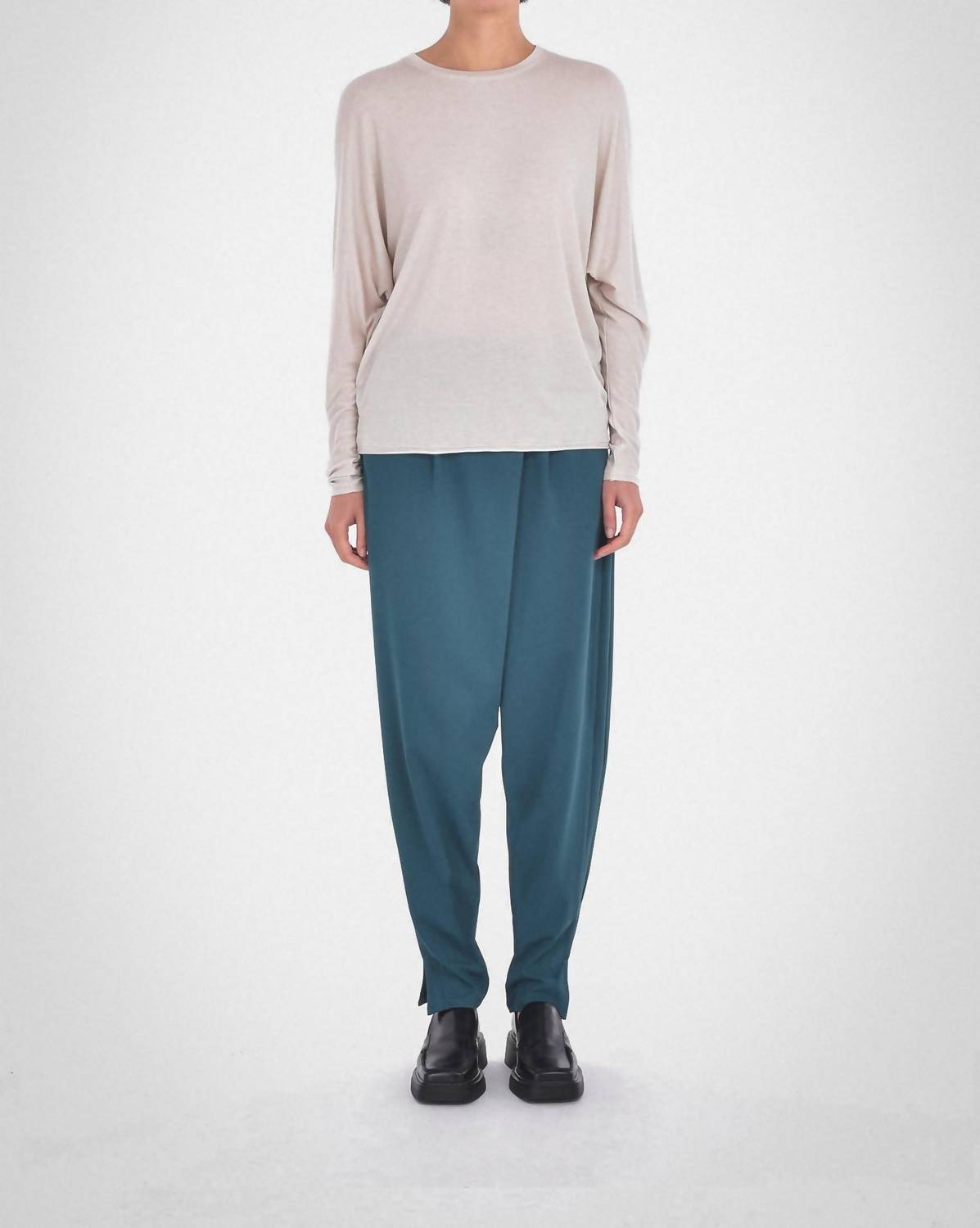 Designed for both relaxed comfort and chic style. Features a classic solid oatmeal color. Timeless crew neckline. Perfectly complemented by the laid-back dolman sleeves. Expertly composed of 76% Lyocell, 19% Wool, and 5% Spandex. WRAP certified to ensure ethical production standards. Closure is a convenient pull-on style. Simply hand wash cold with like colors, dry flat, and cool iron if needed.