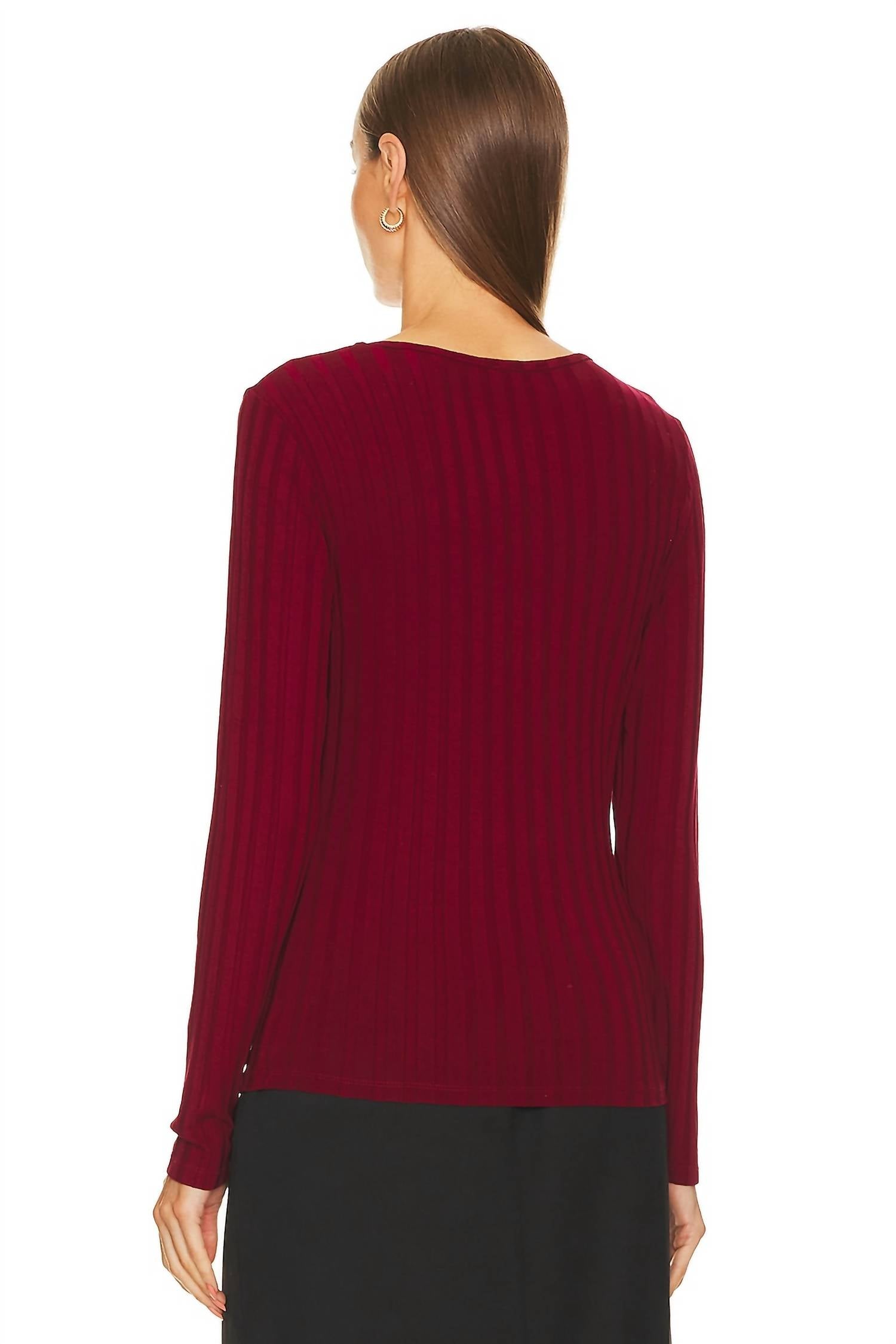 A long sleeve top you can wear with denim, skirts, well... just about anything! Elevate your wardrobe with the Square Neck Long Sleeve Top by bobi, crafted in a rich Pinot hue. This textured top boasts long sleeves and a stylish square neckline for a modern look. Made from soft Rayon, it features a convenient pull-on closure. Pair this wardrobe essential with your favorite bottoms for an effortlessly chic outfit.