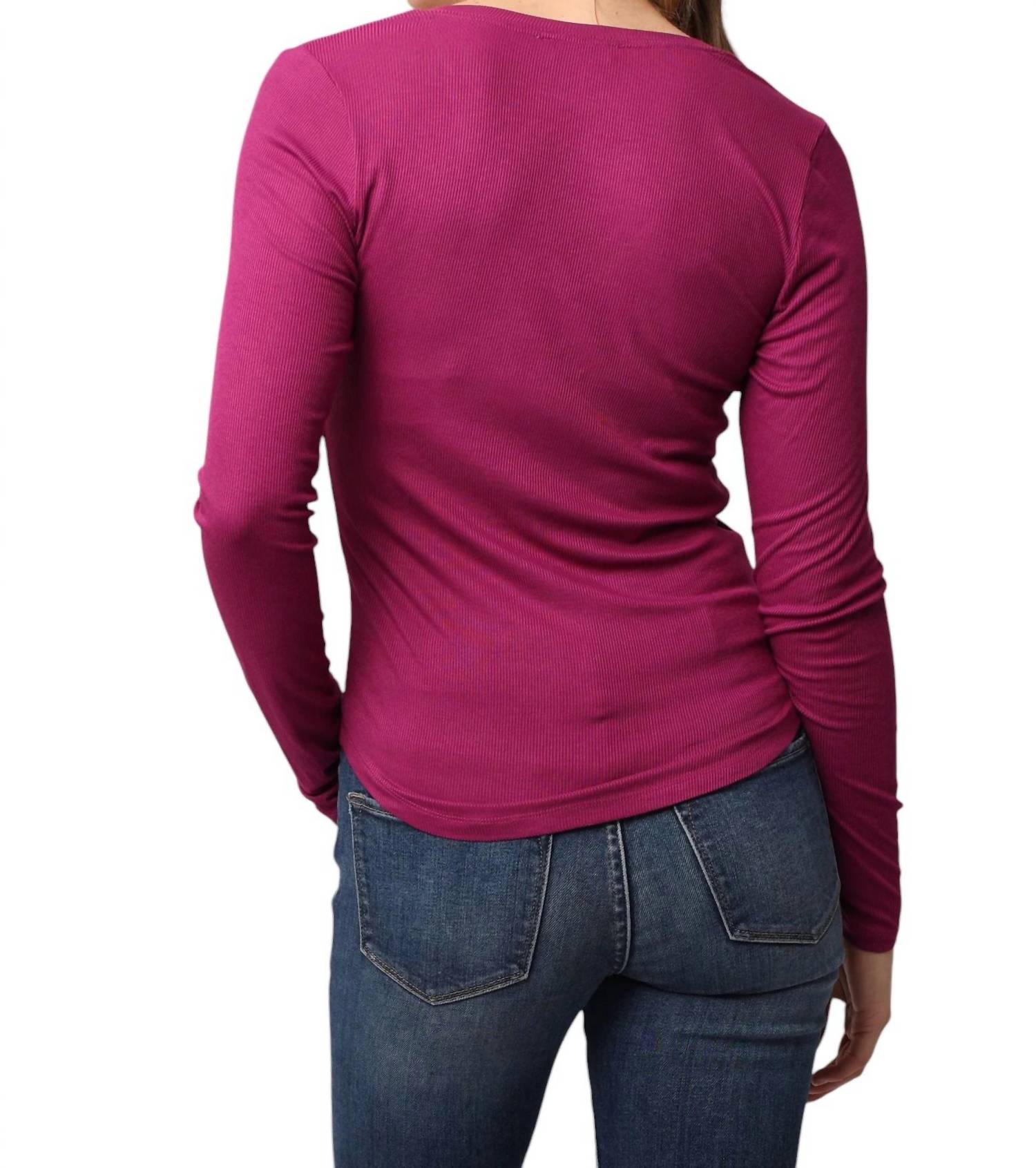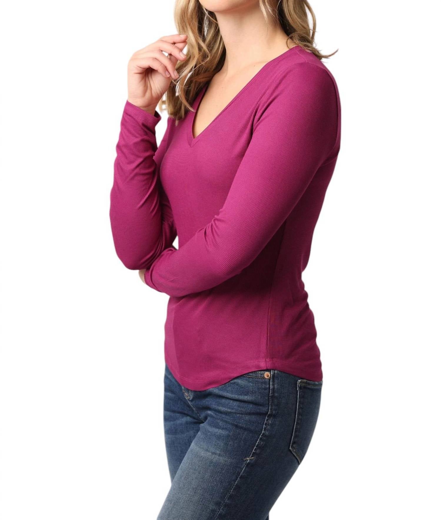 Introducing the Sophie Top by Another Love, a versatile staple for your wardrobe. This top features a long sleeve design and a flattering V-neck, crafted from a blend of 93% Rayon and 7% Spandex for a comfortable fit. Garment length is 22.5 inches, with a bust measurement of 32 inches for size small. Easy pull-on closure, made to be machine washed cold on a gentle cycle and tumble-dried for effortless care.