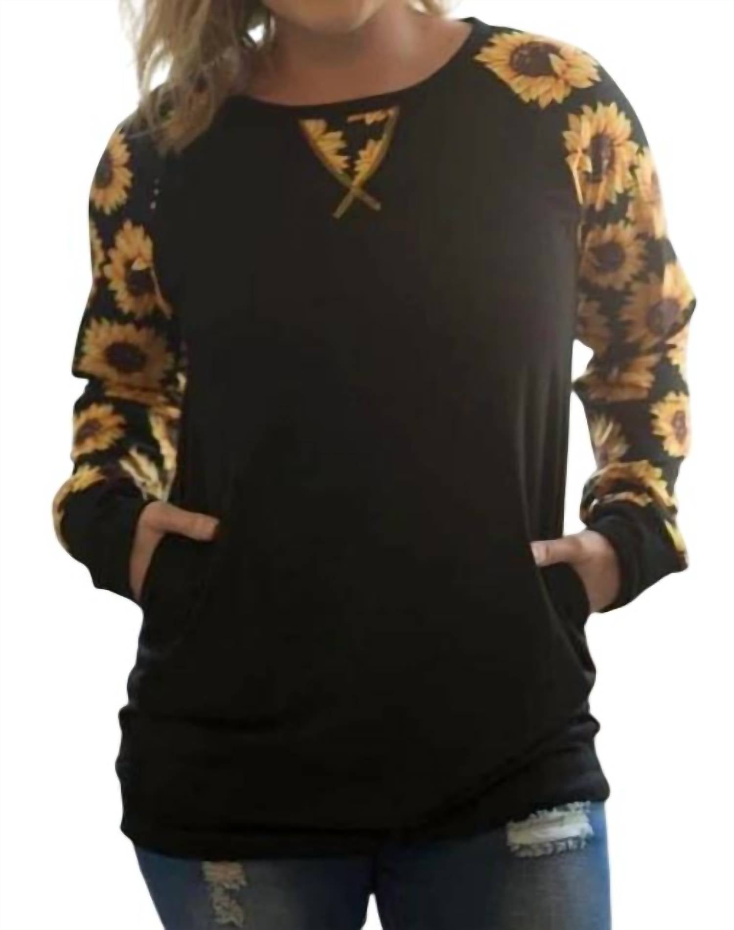 It features a scoop neckline with a front inset. Long raglan cuffed sleeves. Banded hemline. Side seam pockets. Super soft, lightweight fabric. Comfortable stretchy fit. Small bust 38" length 30". Medium bust 40" length 31". Large bust 44" length 31". XL bust 47" length 32". 2XL bust 50" length 32". 3XL bust 54" length 32". 65% polyester 30% cotton 5% spandex. Hand wash cold. Imported.