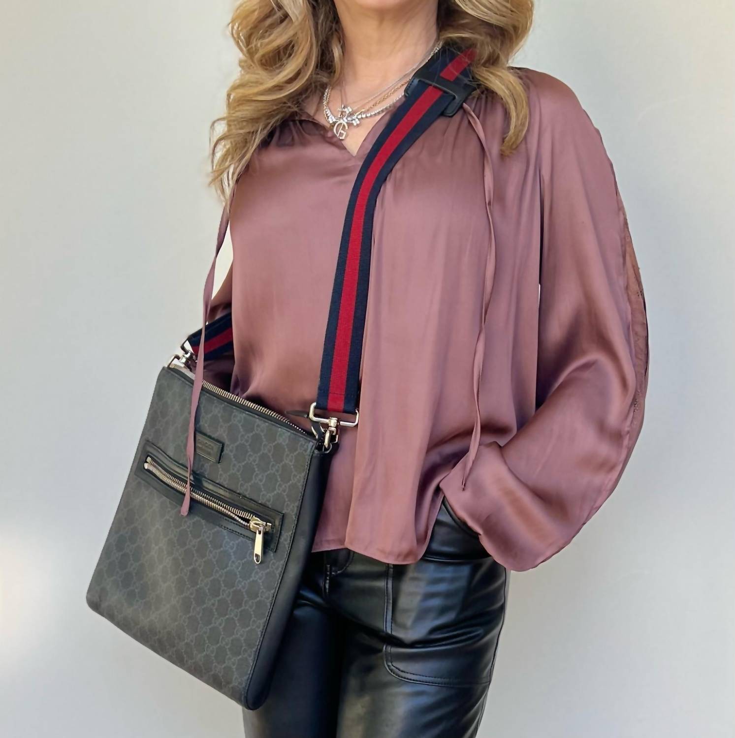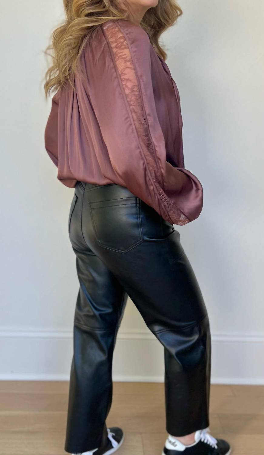 The perfect long sleeve tee that goes with just about anything. Meet the Split Neck Blouse With Lace Sleeve by Current Air, a sophisticated addition to your wardrobe in a rich Cocoa Brown hue. Crafted mainly from 100% Polyester with a contrast of 100% Nylon, this blouse features elegant long lace sleeves and a V-neckline for a touch of femininity. A solid pattern and absence of pockets ensure smooth lines and a sleek silhouette, with no closure for effortless wear. Ideal for versatile styling across sizes XXS to L, accommodating a range of bust and waist measurements for a perfect fit.