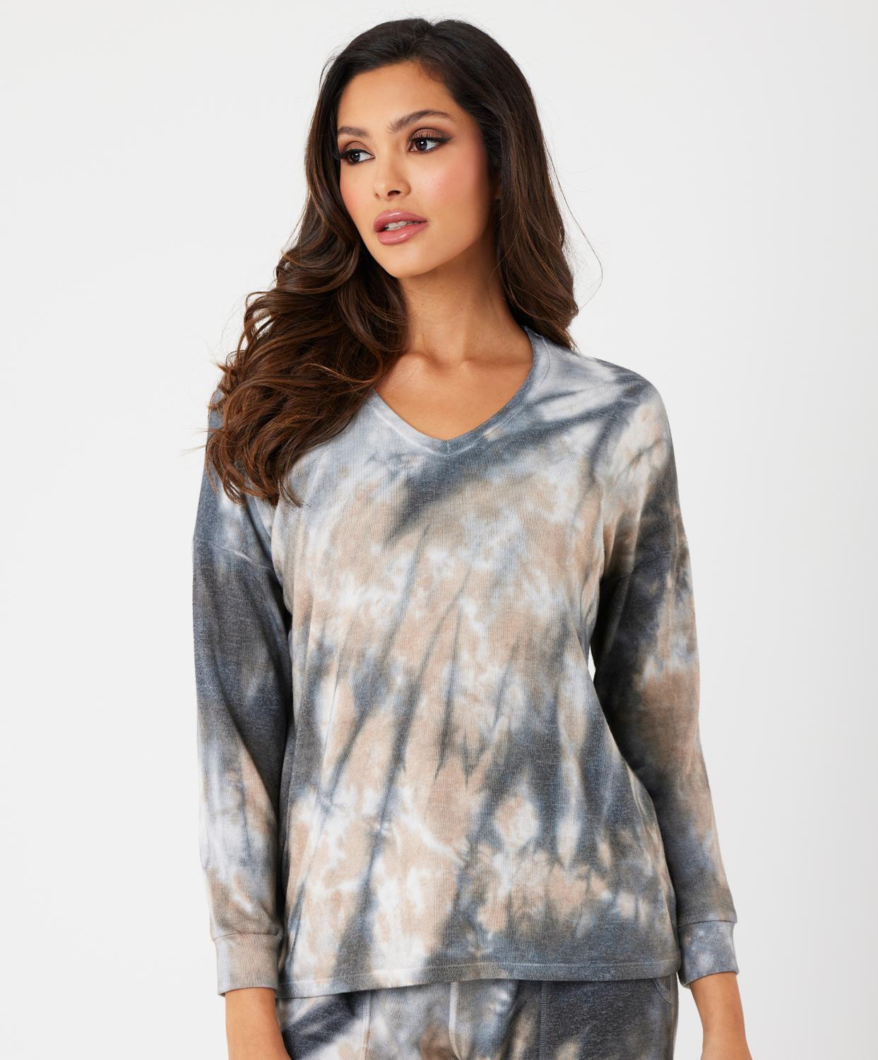 French Kyss - Marble Wash Long Sleeve V-Neck Tio