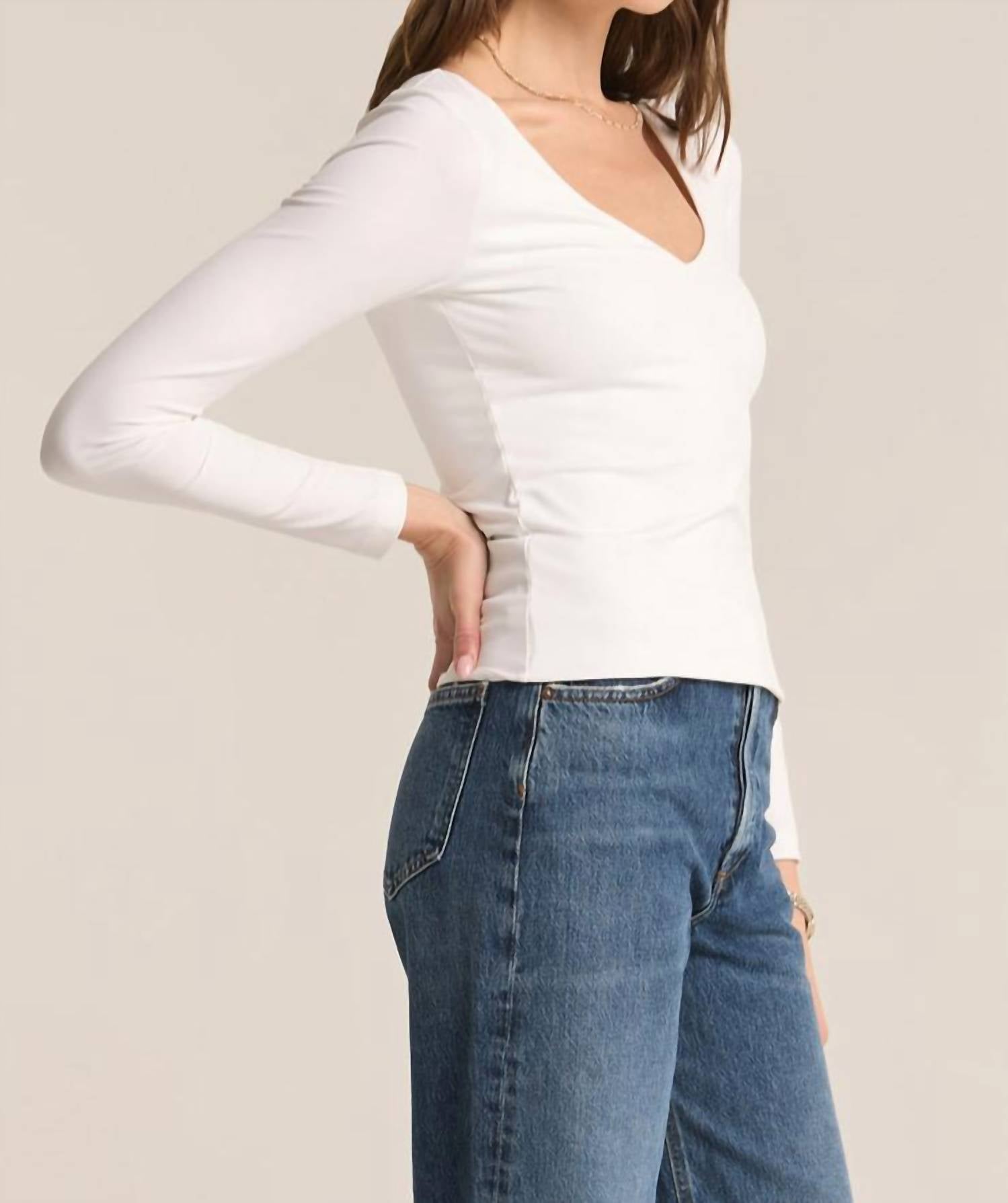 The perfect long sleeve tee that goes with just about anything. The Avala Longsleeve So Smooth Top by Z Supply is an essential addition to your wardrobe, offering both style and comfort. Crafted from a bra-friendly, lined So Smooth Jersey fabric composed of 80% Nylon and 20% Spandex, this long sleeve tee provides a sleek look. Its midweight material and V-neck design make it an effortlessly versatile piece. Care is simple with a machine wash cold and delicate wash cycle, followed by laying flat to dry. Closure: Pull on.
