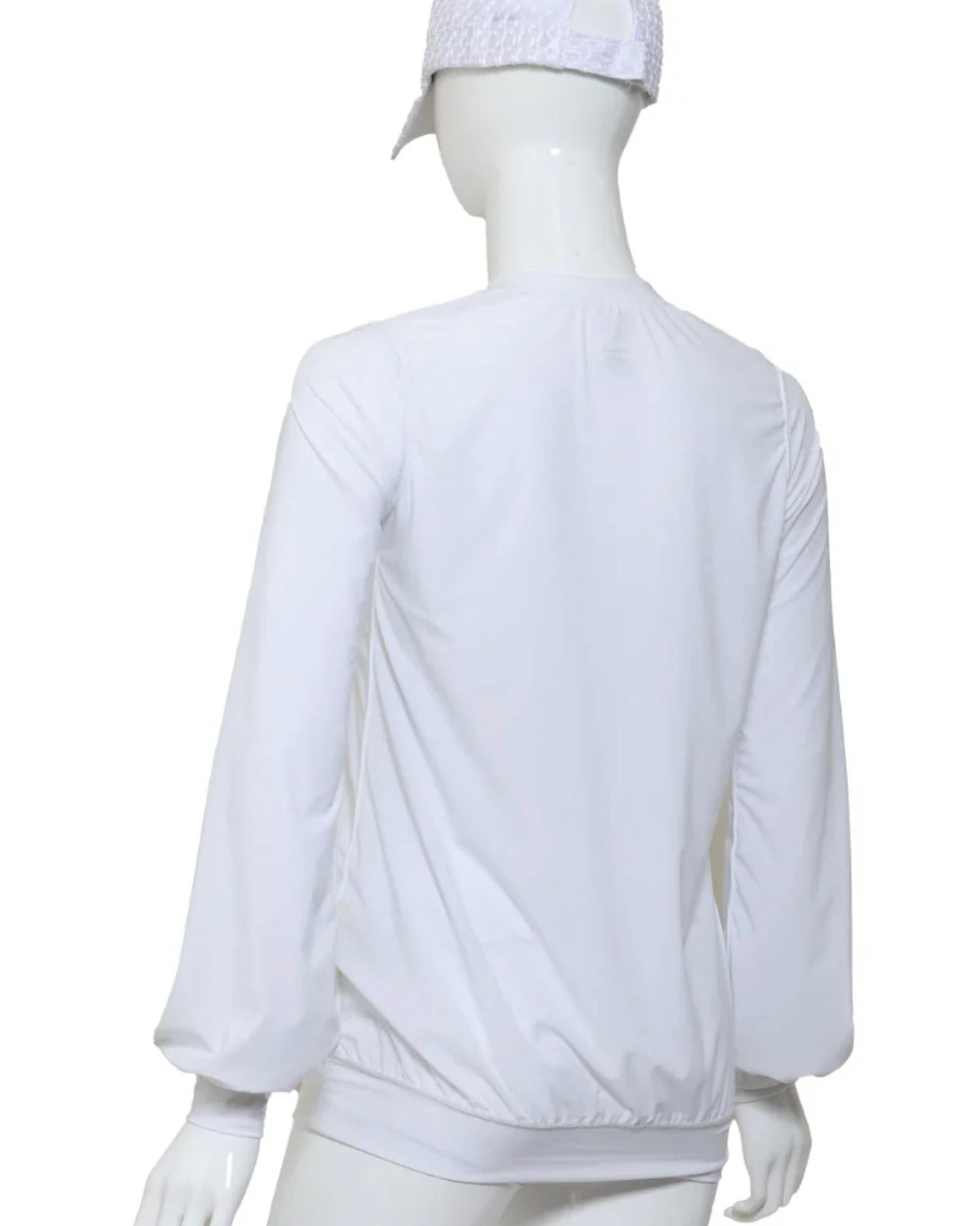 The perfect long sleeve tee that goes with just about anything. Step onto the court with confidence in the Women's Long Sleeve Warm Up Top by Love Love Tennis, designed by Adeline. Crafted with a soft black solid pattern, this feminine piece features a crewneck and falls softly at the hips, perfect for game day or any athleisure occasion. Made from imported fabric in Los Angeles, it offers warmth and comfort with long sleeves and a pull-on closure. Care is simple - it's fully machine washable and should be line dried.