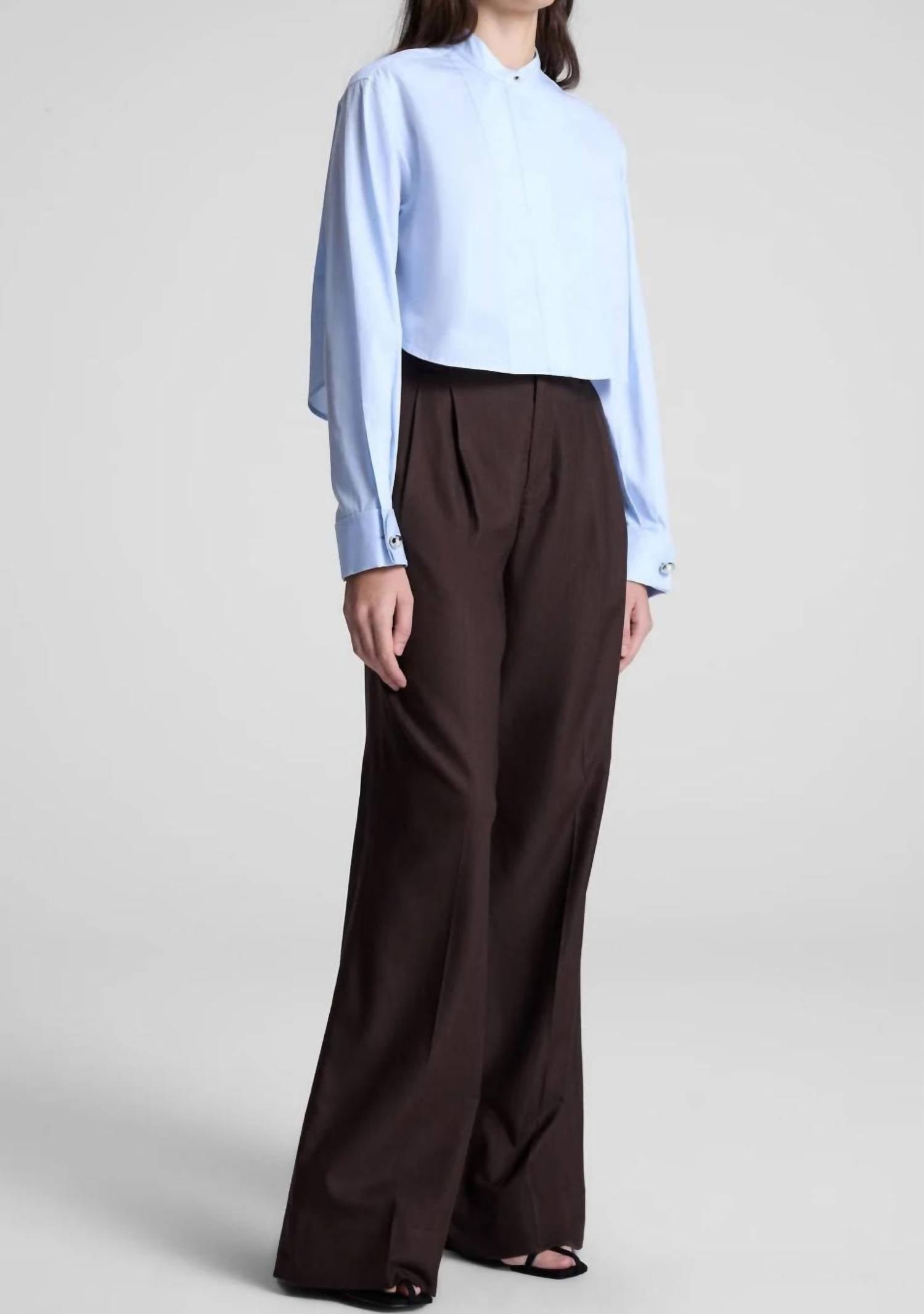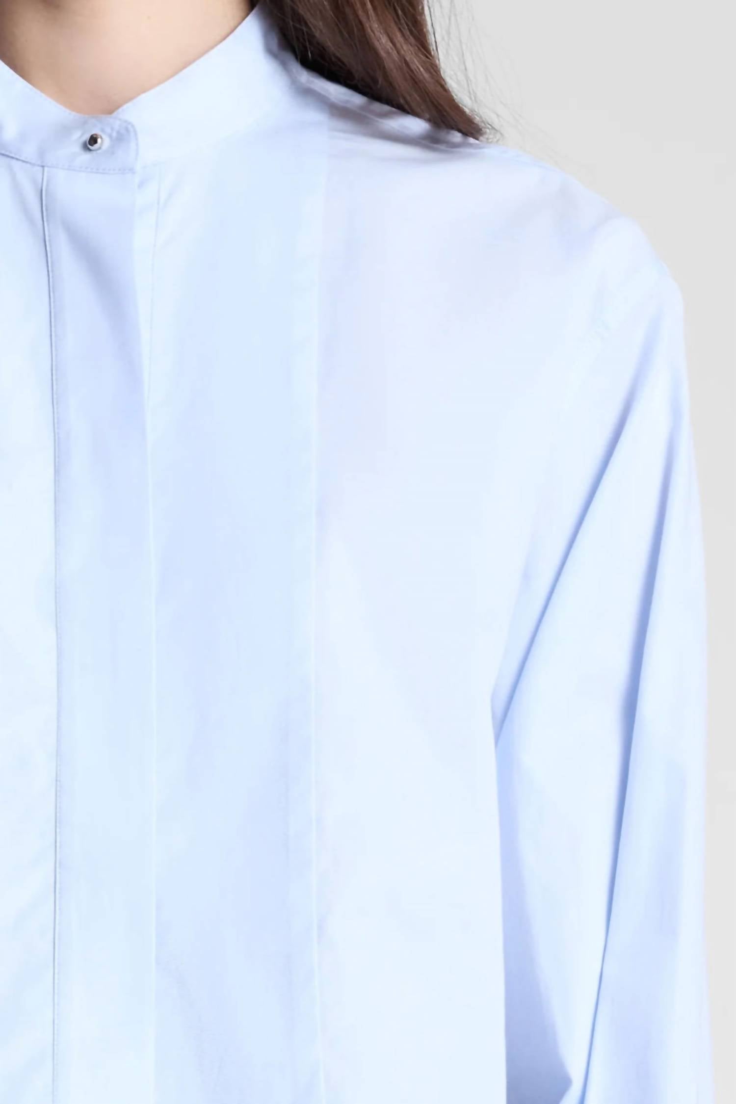 The perfect long sleeve tee that goes with just about anything. Introducing the Kat Long Sleeve Top by A.L.C., a stylish addition to your spring wardrobe in a refreshing Ice Water hue. Crafted from pure Cotton, this shirt features a collar and a slightly cropped hem for a modern silhouette. Closure: Button closure with a concealed placket, enhanced by sculptural hardware at the cuffs. Care: Machine wash and tumble dry.