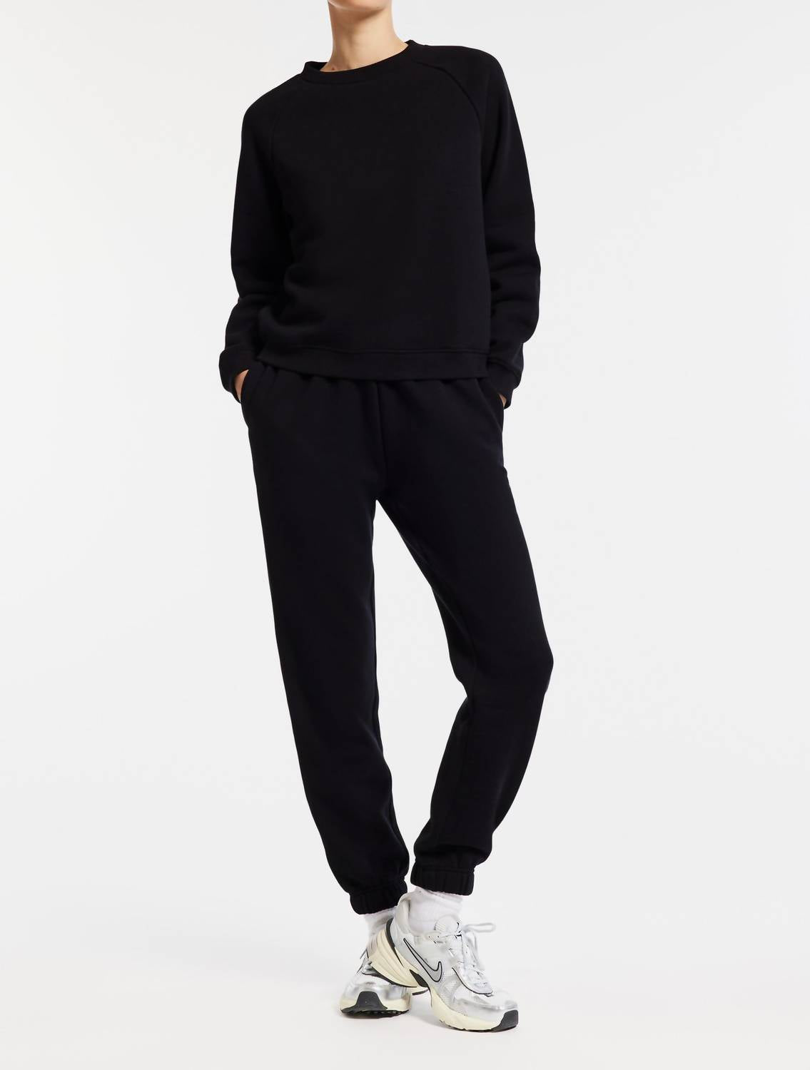 The perfect long sleeve tee that goes with just about anything. Indulge in effortless comfort with the Park Weekend Fleece Crewneck Sweatshirt by BANDIER, an ideal piece for both lounging and active days. This black sweatshirt crafted from 88% cotton and 12% recycled polyester ensures a sustainable yet soft touch. Boasting a classic crew neckline and long sleeves, it's designed for a timeless look. Featuring a pull-on closure, it's easy to style for any casual occasion. Care instructions include machine wash and tumble dry for your convenience. With approximate dimensions of 28" length, 20" width, and 10" height, it fits true to size and weighs about 1.5 lbs.