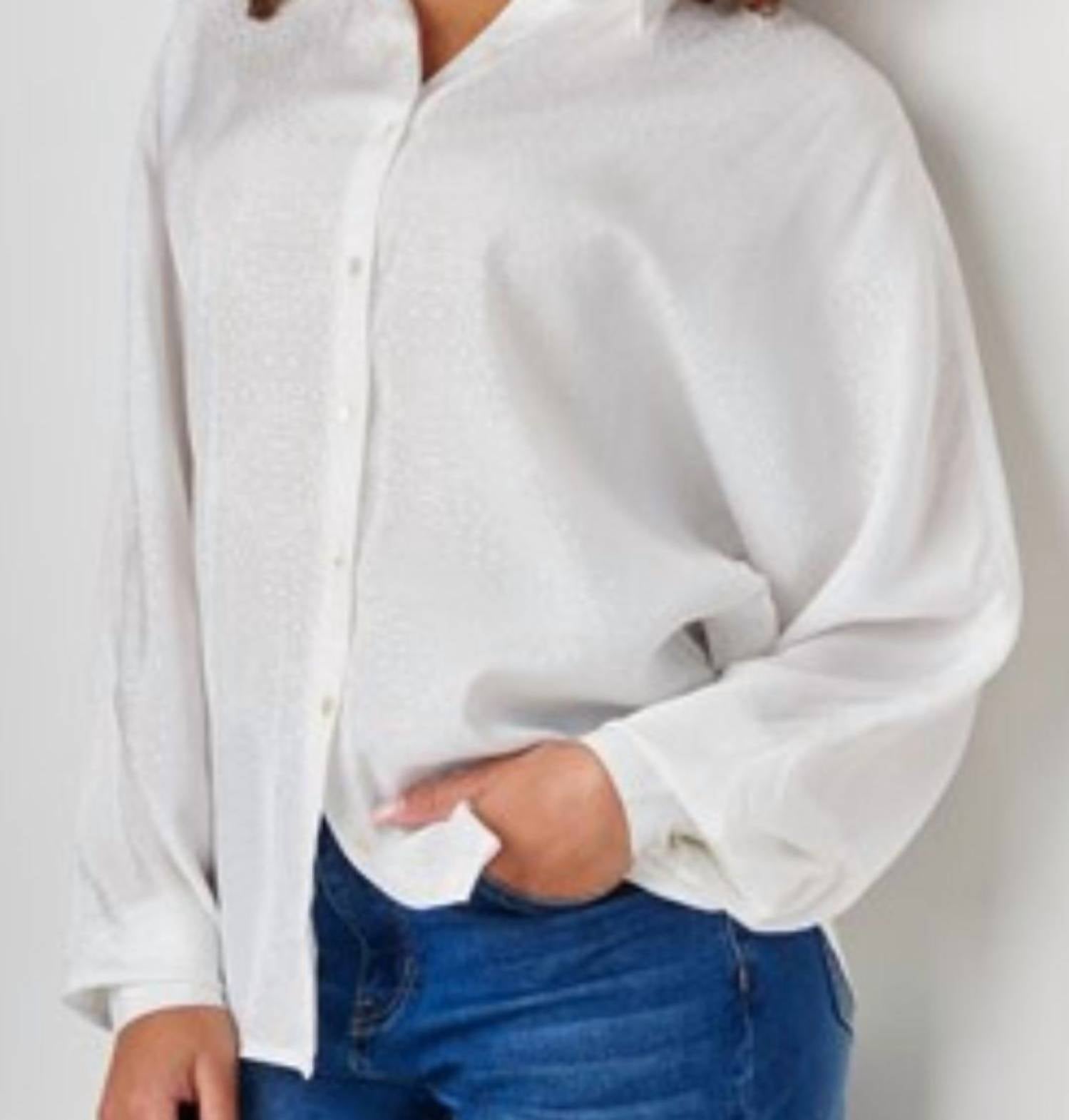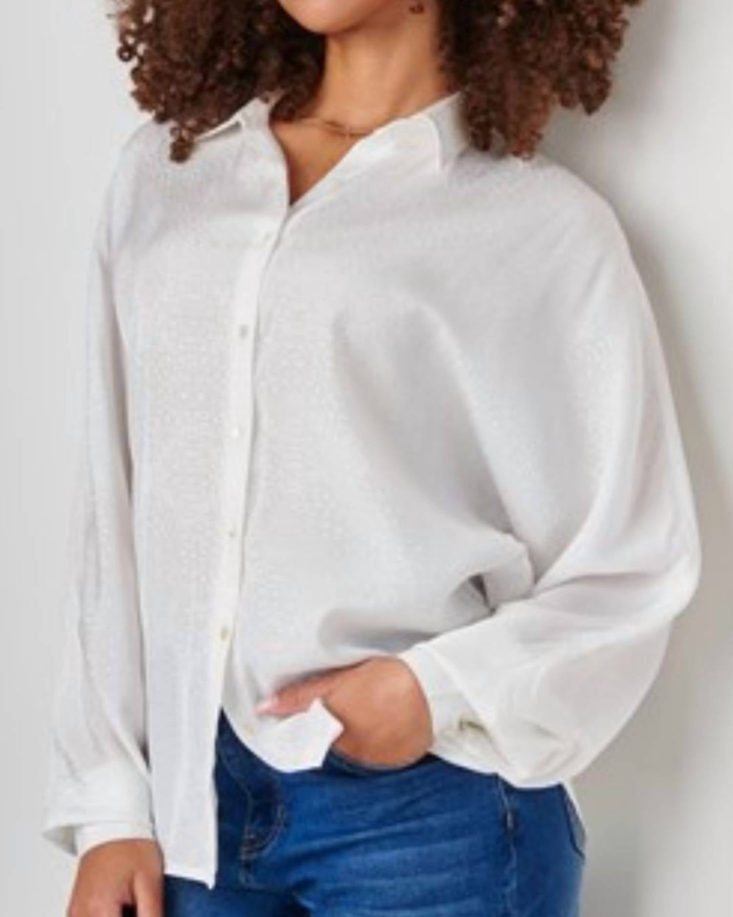 The perfect long sleeve tee that goes with just about anything. Introducing the Brigitte Long Sleeve Blouse by Charlie Paige, an elegant white piece perfect for workwear and special occasions. This blouse features long sleeves and a classic collar, offering a sophisticated style that's versatile for any wardrobe. Closure: Button closure.