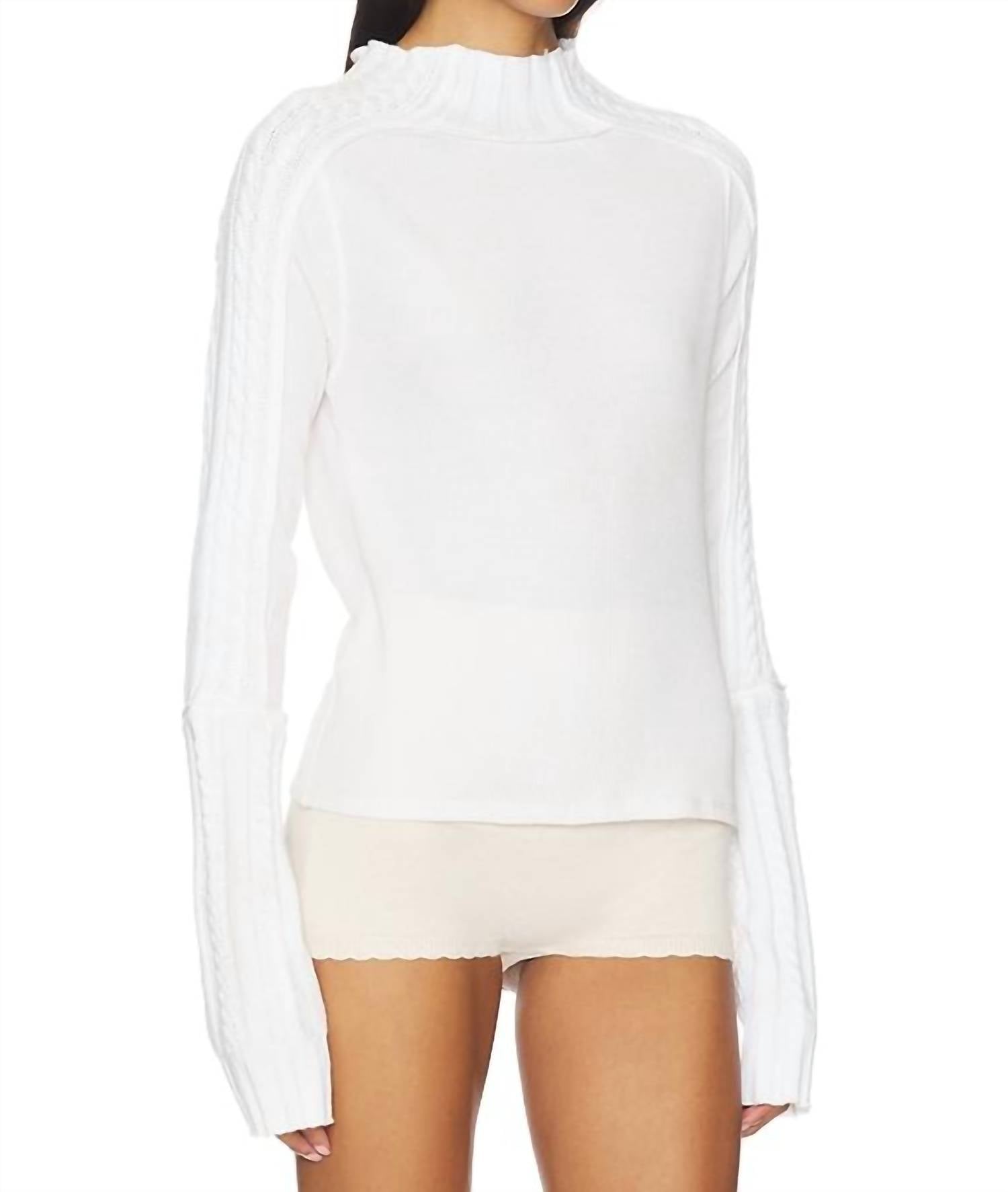 A long sleeve top you can wear with denim, skirts, well... just about anything! Embrace comfort and style with the Breezy Swit Top by Free People, perfect for those laid-back Thanksgiving gatherings. This long sleeve top in a cozy Ivory hue features a turtleneck offering a minimalist vibe with its solid cotton knit blend. Designed with a pull-on closure for easy wear, it's crafted with cable-knit trims and a comfy waffle base. Care: Hand wash to maintain its softness and structure.
