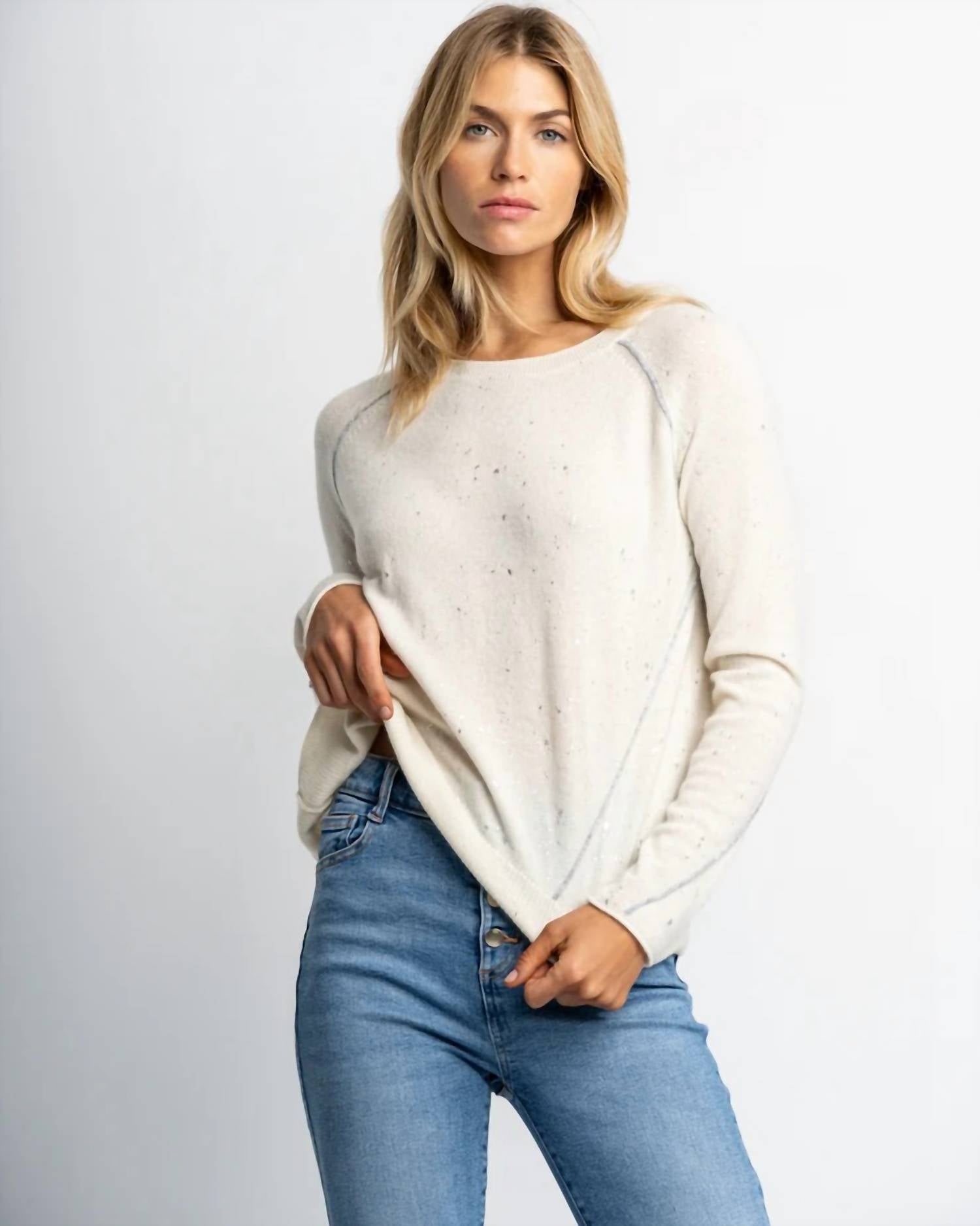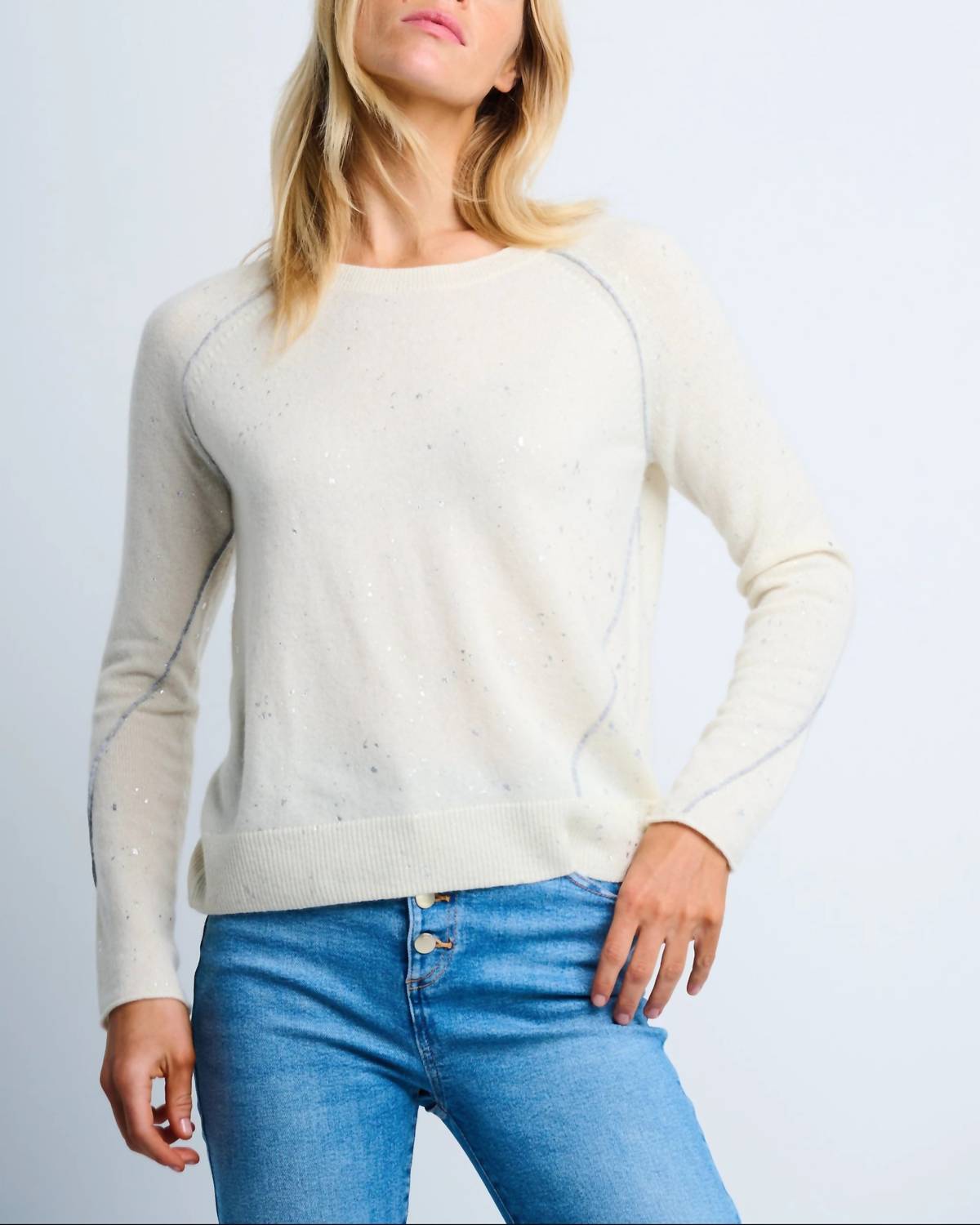 Great fit, cute design, soft fabric. You'll love everything about this long sleeve tee. Introducing the Lisa Todd Diamond Dust Top, a stunning addition to your winter wardrobe in a captivating winter white hue. This long sleeve women's tee features a magical diamond dust shimmer that elegantly reflects light with every movement. Designed with a minimalist and patterned aesthetic, this top is perfect for a sophisticated dinner party. Closure is a convenient pull-on style, ideal for effortless dressing.