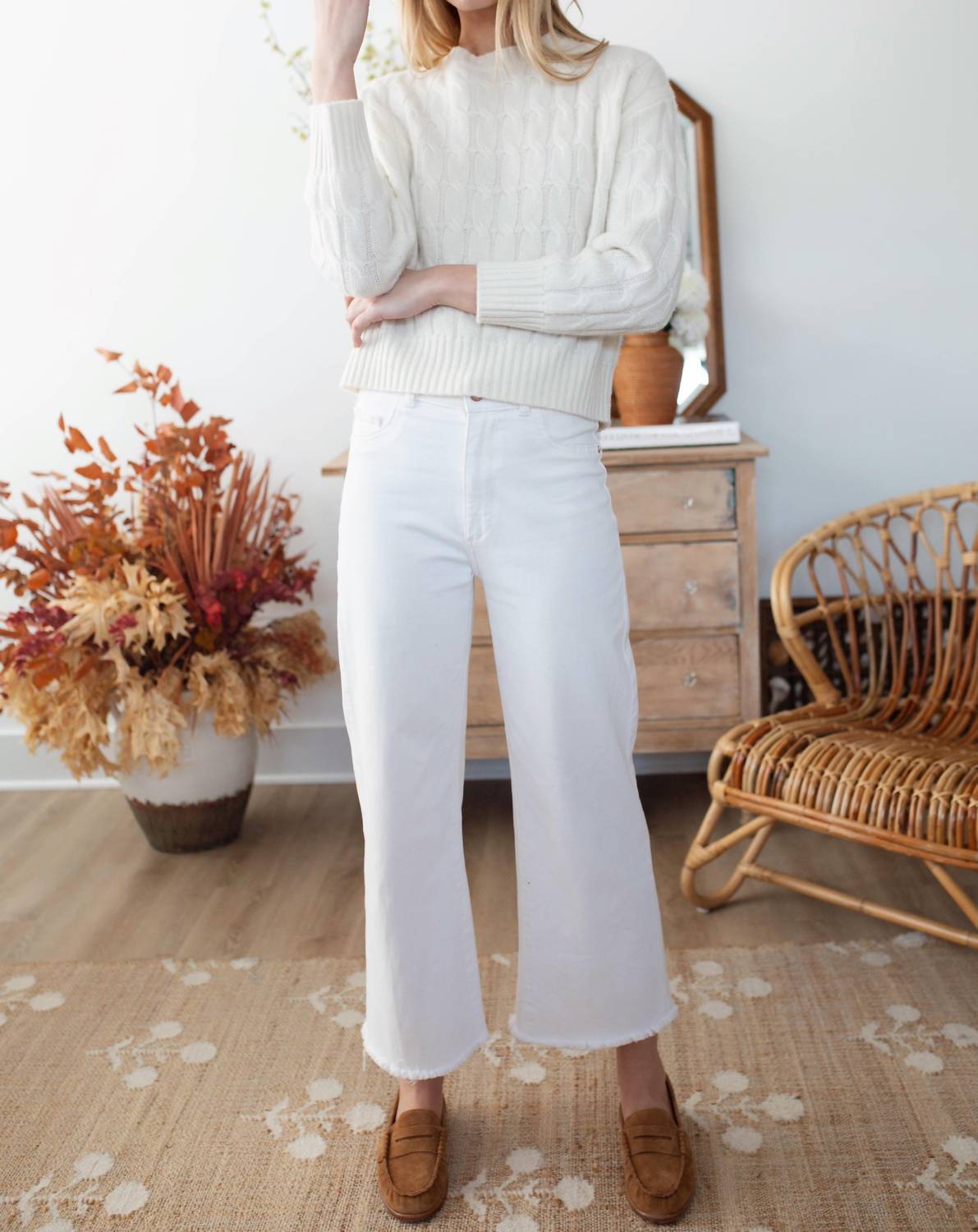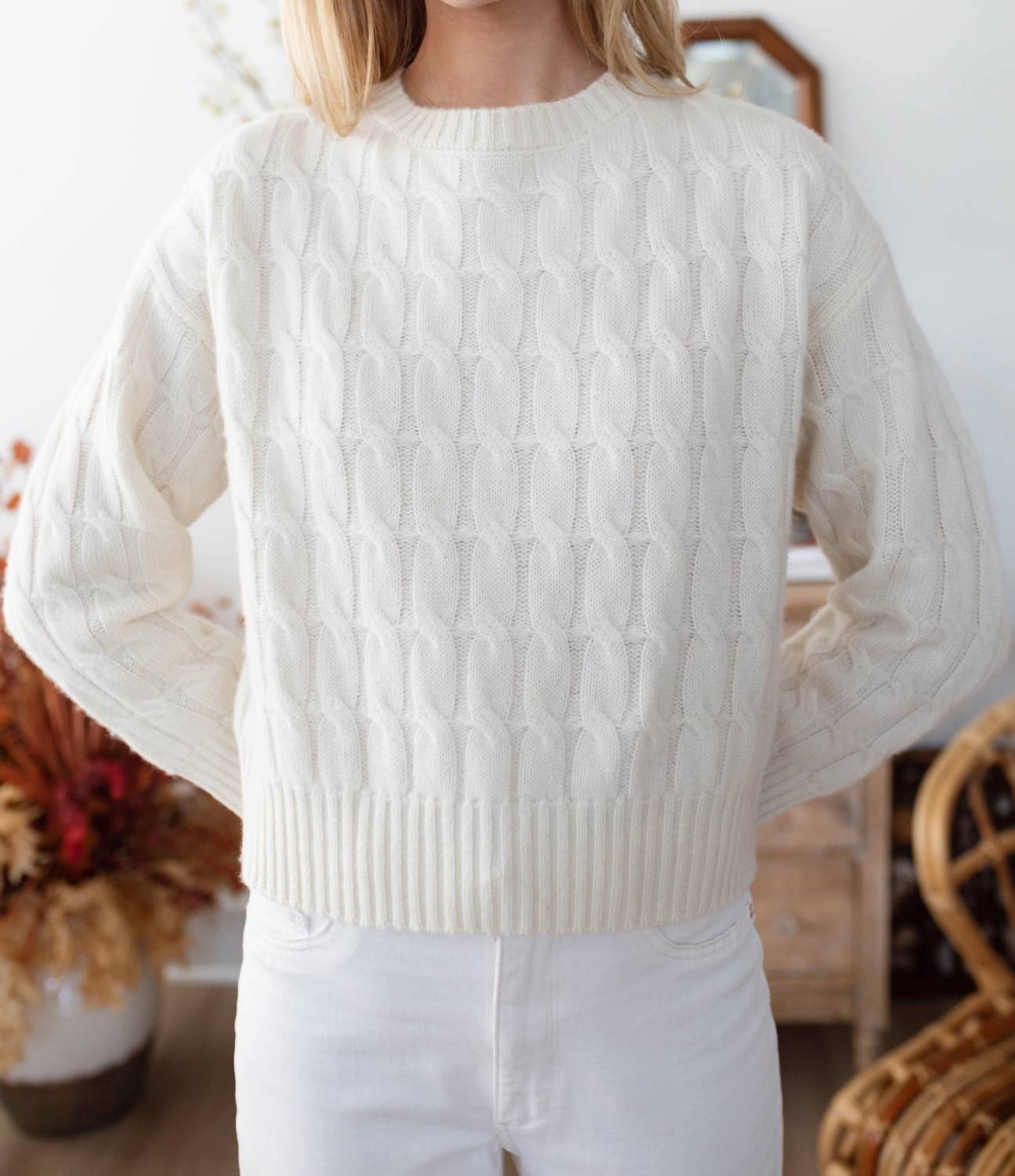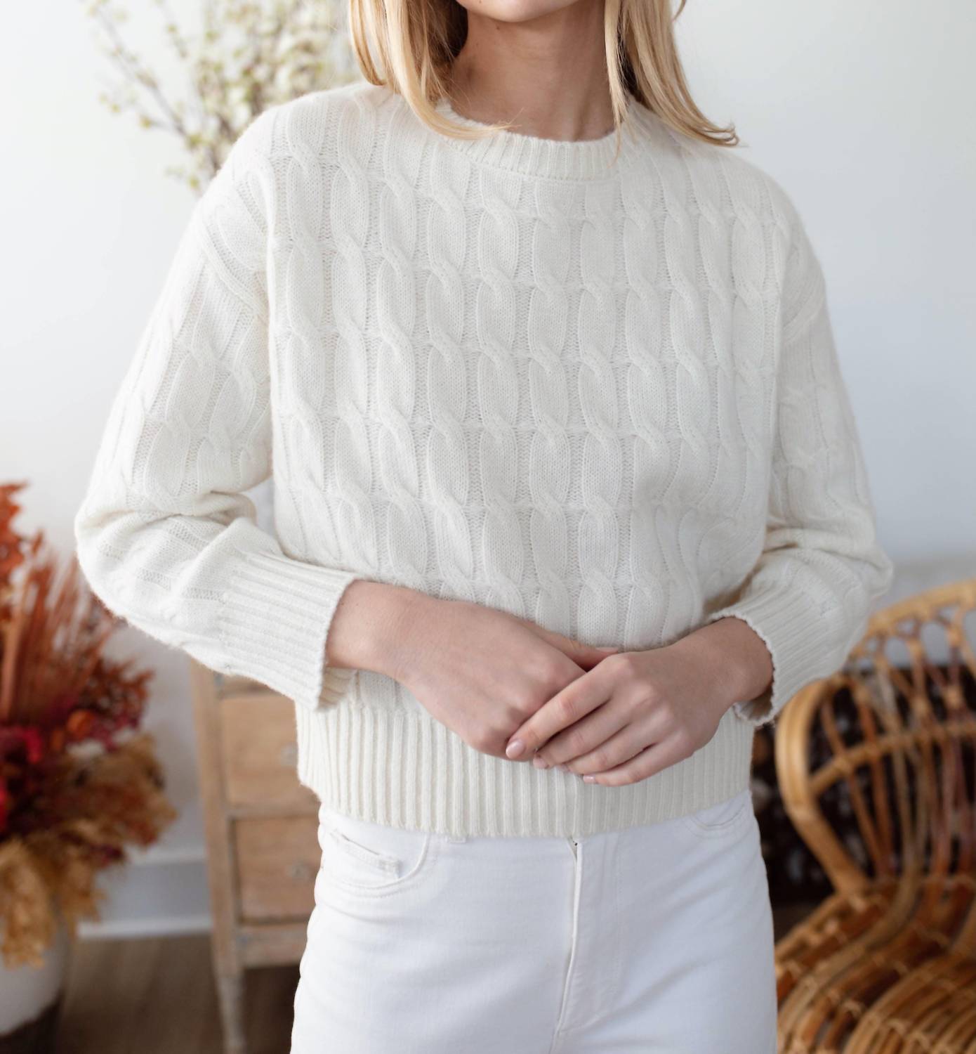 The perfect long sleeve tee that goes with just about anything. Meet the Cable Knit Cashmere Top by Marea, a superb blend of comfort and luxury designed specifically for women. This ivory top showcases elegant long sleeves and a timeless crewneck, emphasizing its textured pattern. Closure: Pull-on. Care: Machine wash. Perfect for minimalist trends and vacation occasions, this top is a remarkable addition to your fall wardrobe.