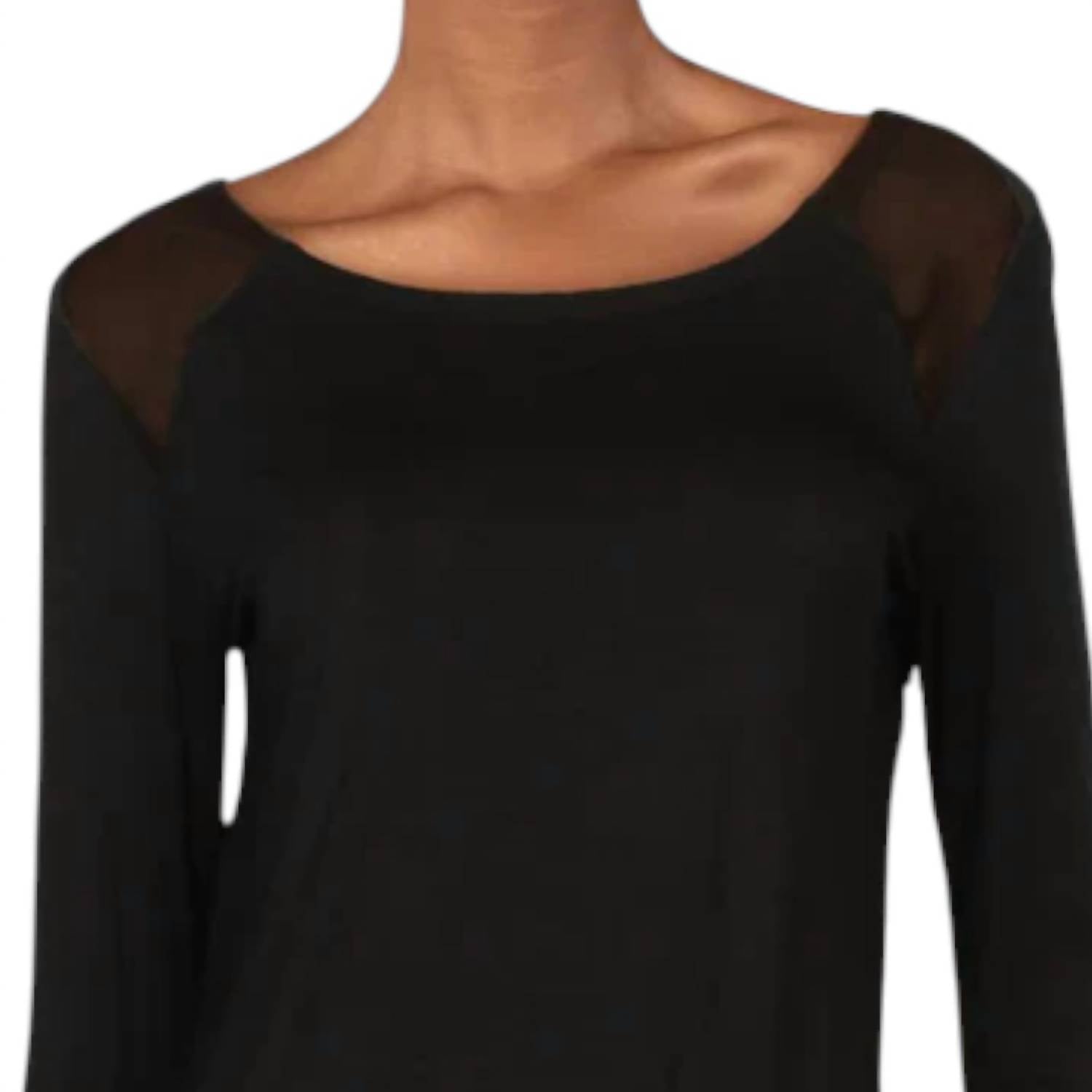 The perfect long sleeve tee that goes with just about anything. Experience the perfect blend of style and functionality with the Sport Splitback Activewear Top by Nicole Miller, crafted in a solid black hue. Featuring long sleeves with thumbhole cuffs, this pullover top is made from a comfortable stretch fabric composed of 95% rayon and 5% spandex. It includes mesh inserts to keep you cool and dry and boasts a unique split back detail. Care instructions: Hand wash and line dry.