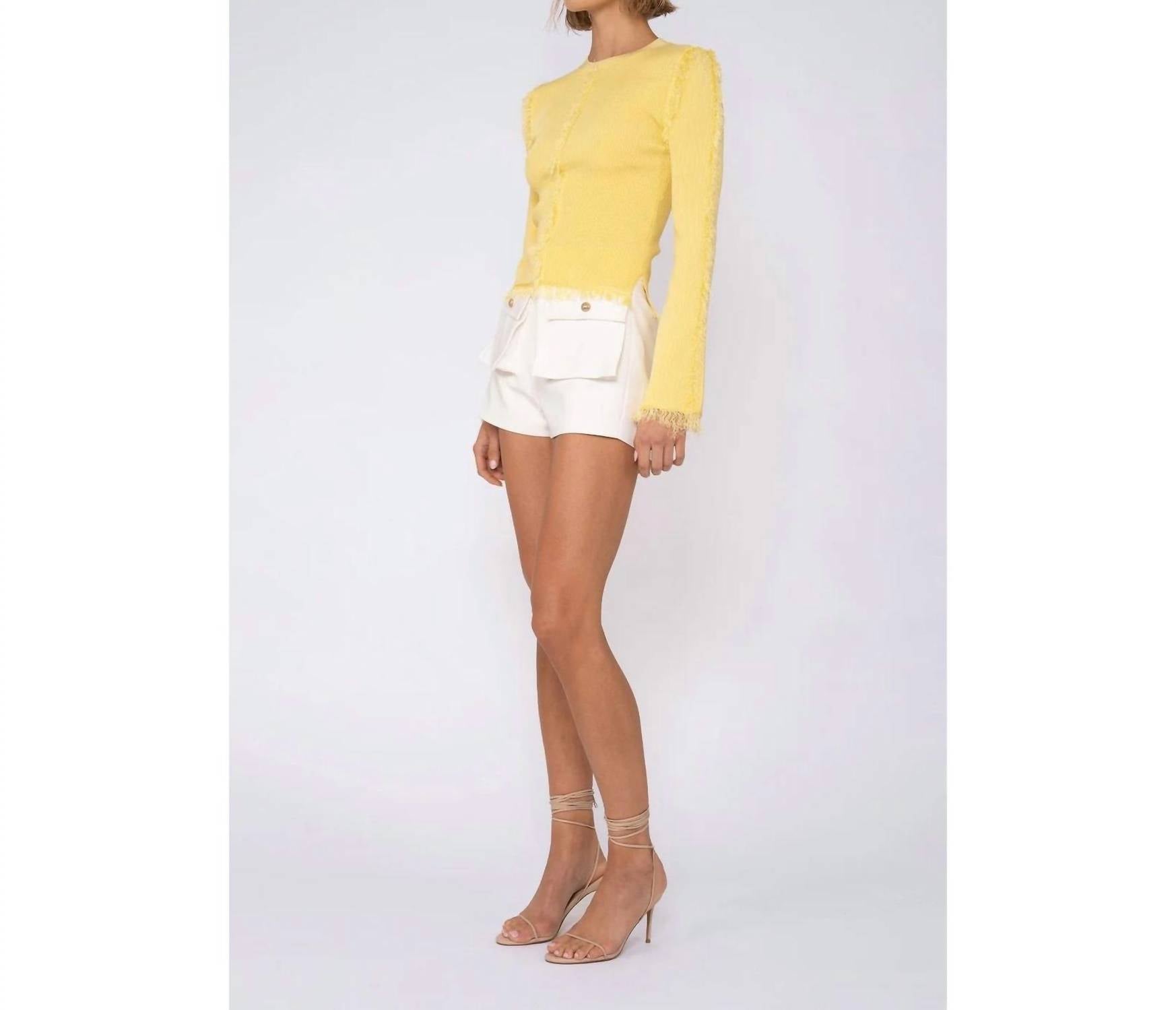 Great fit, cute design, soft fabric. You'll love everything about this long sleeve tee. Meet the Alma Long Sleeve Top by Nonchalant Label, a statement piece in vibrant Pineapple hue perfect for your spring wardrobe. Crafted with 75% Rayon, 23% Nylon, and 2% Spandex, this textured sweater knit boasts a comfortable pull-on closure. It features a crewneck design, seamlessly blending style and ease. Care for it effortlessly with machine wash instructions, making it ideal for vacations and festive Easter occasions.