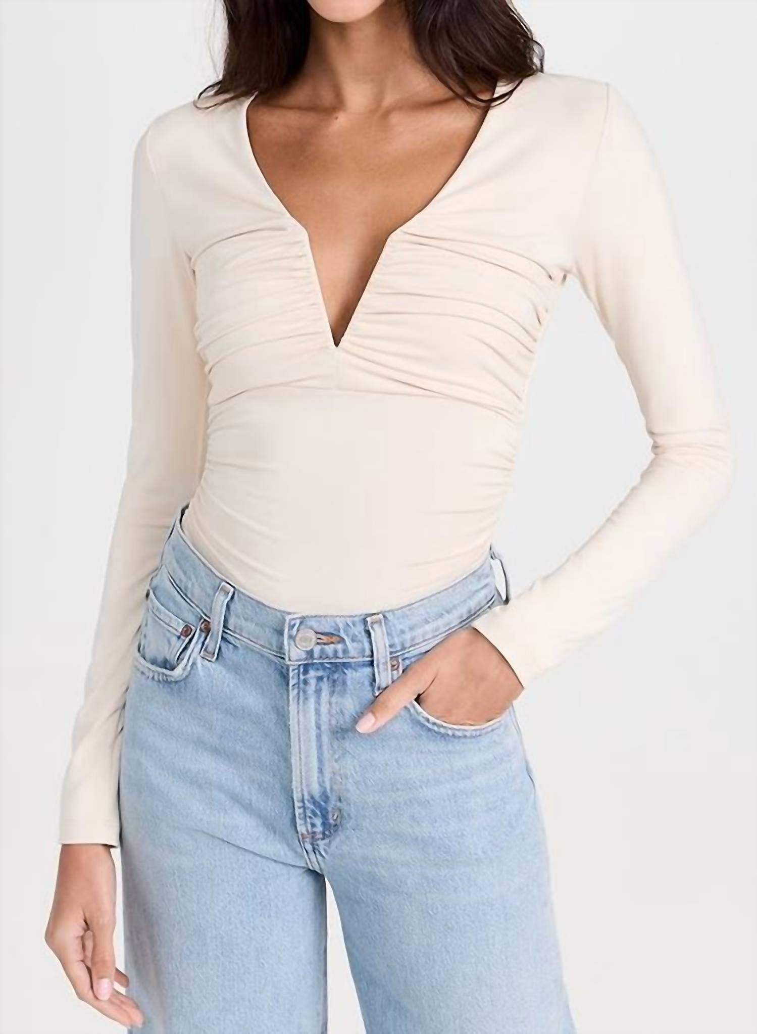 Susana Monaco - V-neck Gathered Long Sleeve Top
