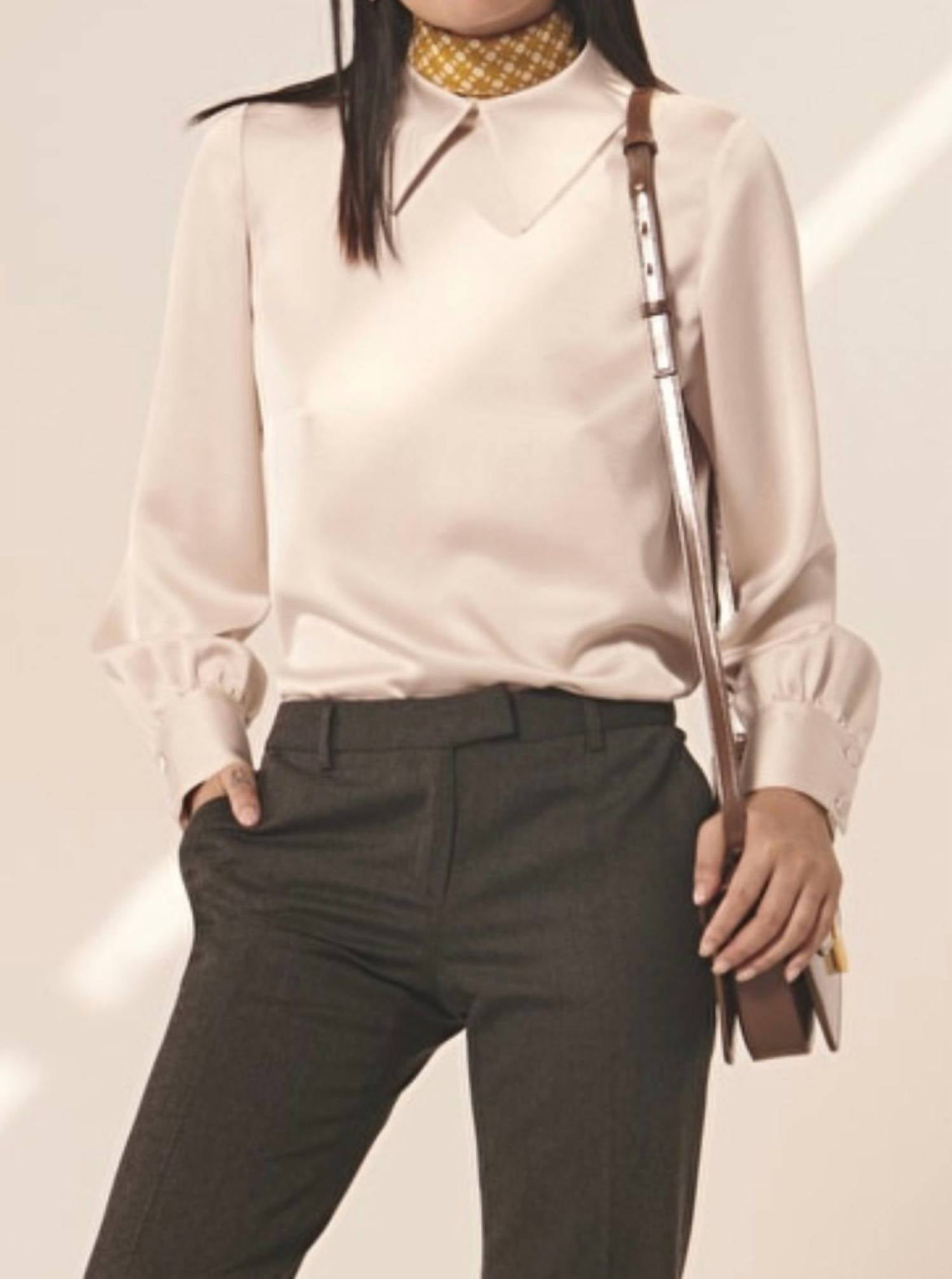 A long sleeve top you can wear with denim, skirts, well... just about anything! The TARA JARMON Long Sleeve Silk Top in champagne is a sophisticated choice for a dinner party or Thanksgiving gathering. Crafted from 100% polyester, this elegant piece exudes Parisian charm. It features a classic collar and a convenient zip closure, offering both style and ease. To maintain its pristine condition, machine wash and line dry are recommended.