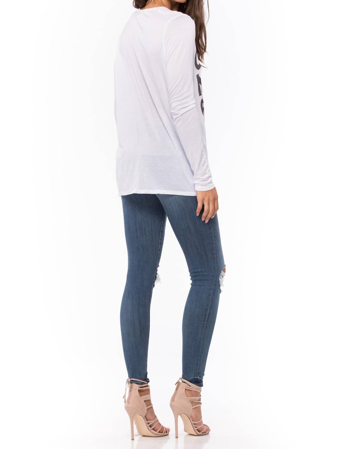 Great fit, cute design, soft fabric. You'll love everything about this long sleeve tee. Introducing the Super Chicks Long Sleeve Tee by The Laundry Room, a tribute to fashion's legendary supermodels with their names emblazoned across the softest tee. This women's long-sleeve shirt in a crisp white features a graphic pattern and a classic crewneck, offering a preppy look that is perfect for any spring occasion, including anniversaries. Closure: Pull on. Care Instructions: Machine wash and tumble dry. One size fits all.