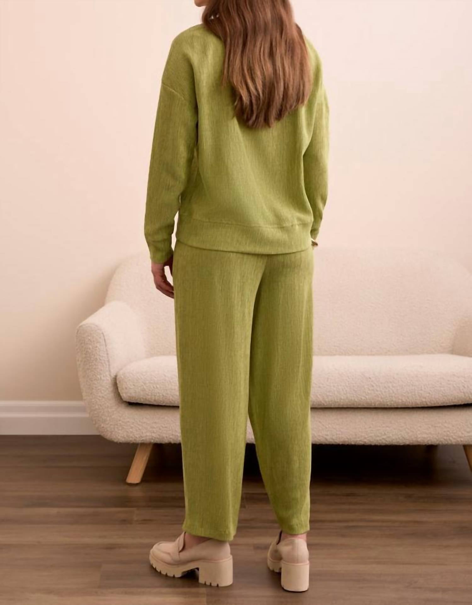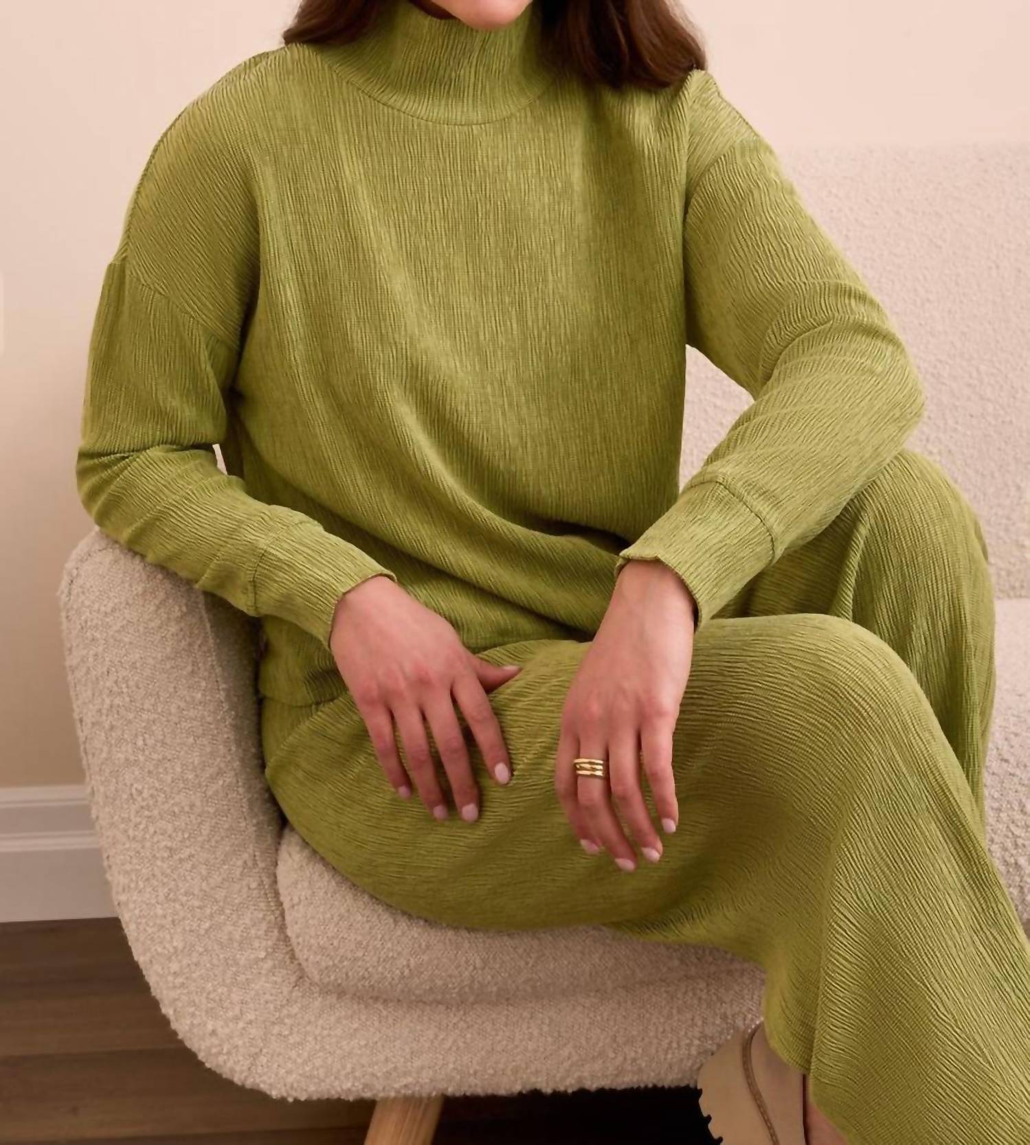 A long sleeve top you can wear with denim, skirts, well... just about anything! Elevate your summer style with the Two-tone Crinkle Drop Shoulder Mock Neck Top by TRIBAL, offered in an eye-catching Wasabi hue. This women's top features long sleeves with a textured, monochrome design and a chic mockneck, perfect for vacation or Mother’s Day occasions. Crafted with a pull-on closure for easy wear, this piece is both fashionable and functional. For care, machine wash and line dry to maintain its quality.