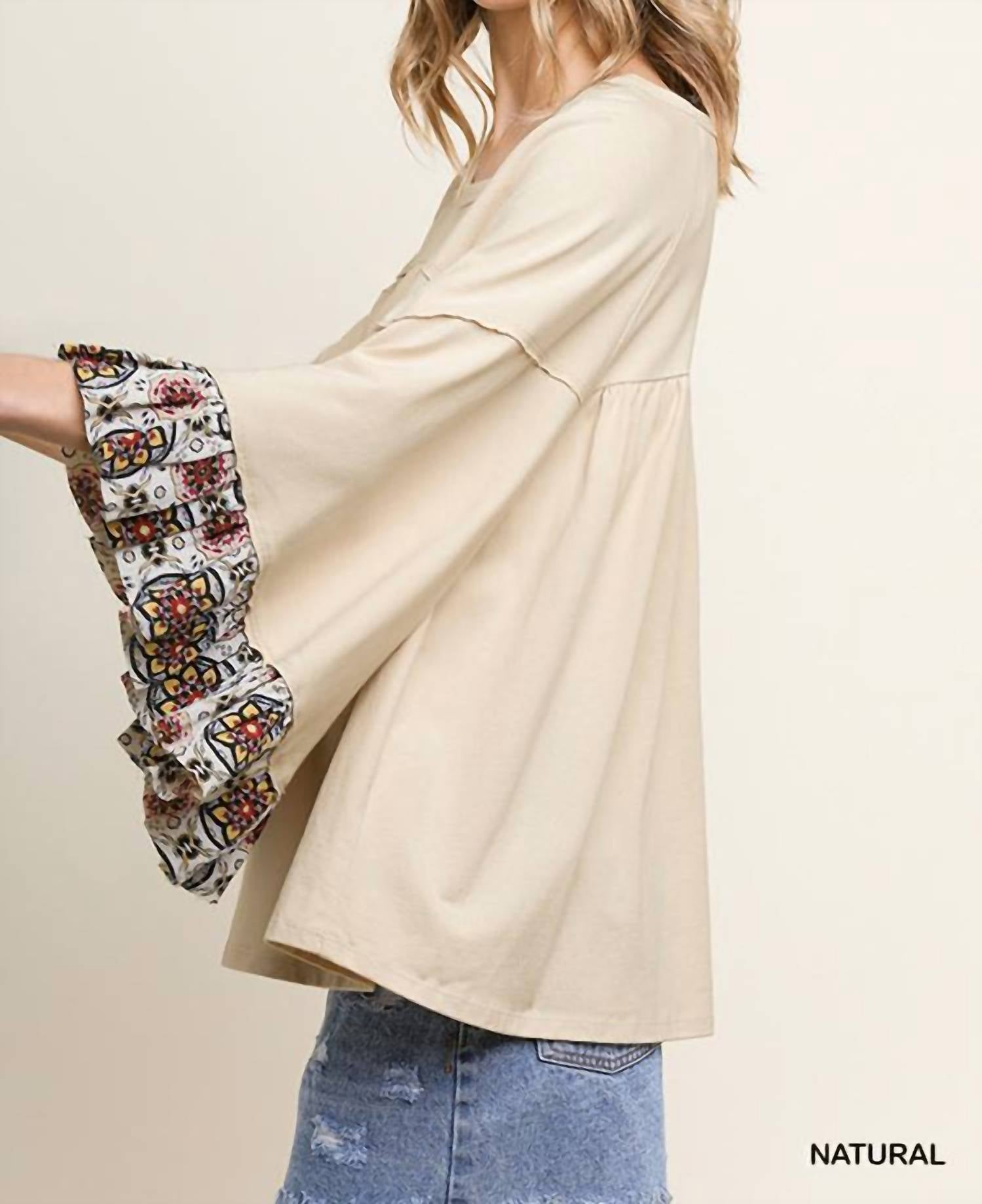 Umgee - Medallion Ruffled Bell Sleeve Top