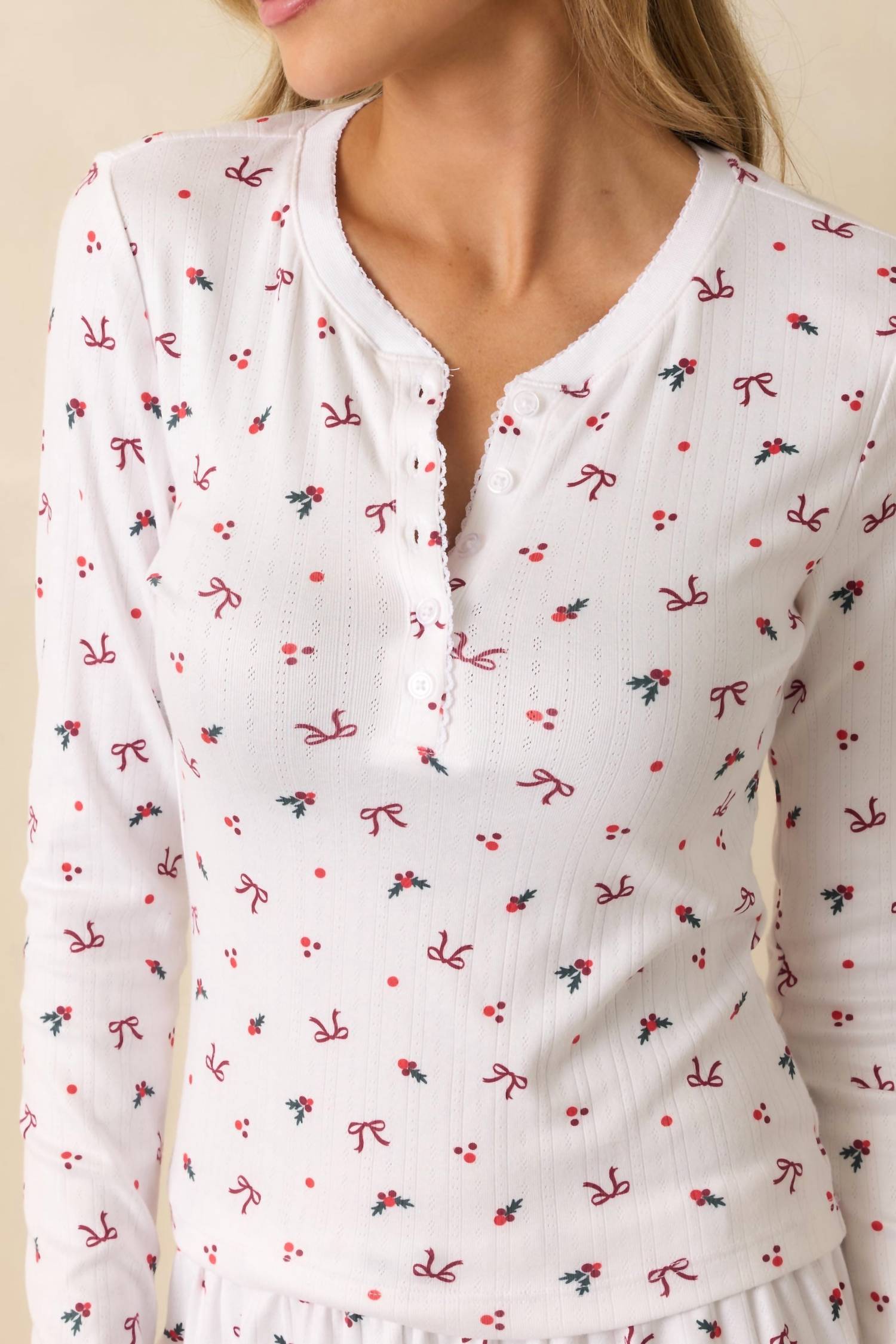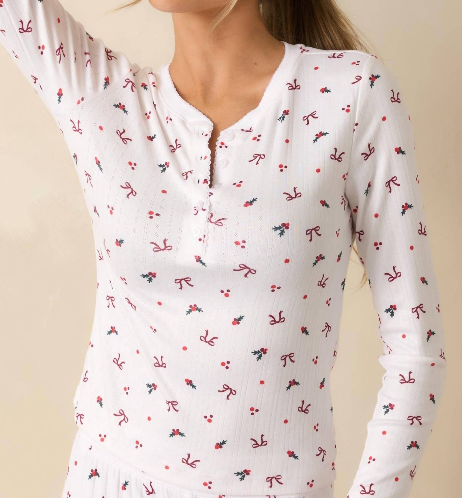 The perfect long sleeve tee that goes with just about anything. Presenting the Holly Long Sleeve Top by Z Supply, a stylish addition to your apparel collection perfect for holiday parties and fall streetwear trends. Crafted from silky-soft pointelle fabric with a blend of 95% polyester and 5% spandex, this fitted long sleeve henley offers a graphic pattern and versatile button closure. Its crewneck design and heavy soft wash finish ensure comfort and modernity. Care instructions include machine washing, ensuring easy maintenance for everyday elegance.