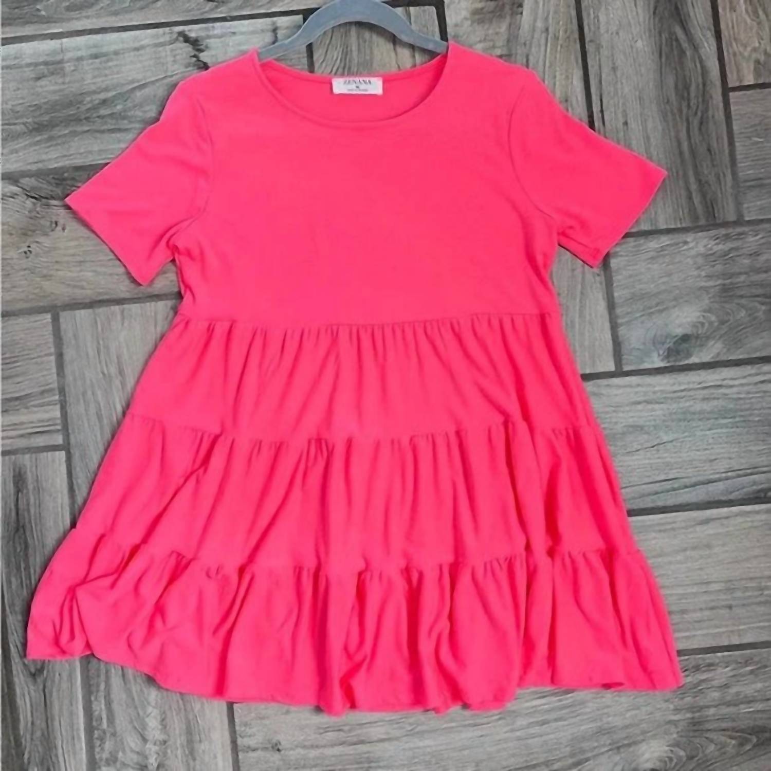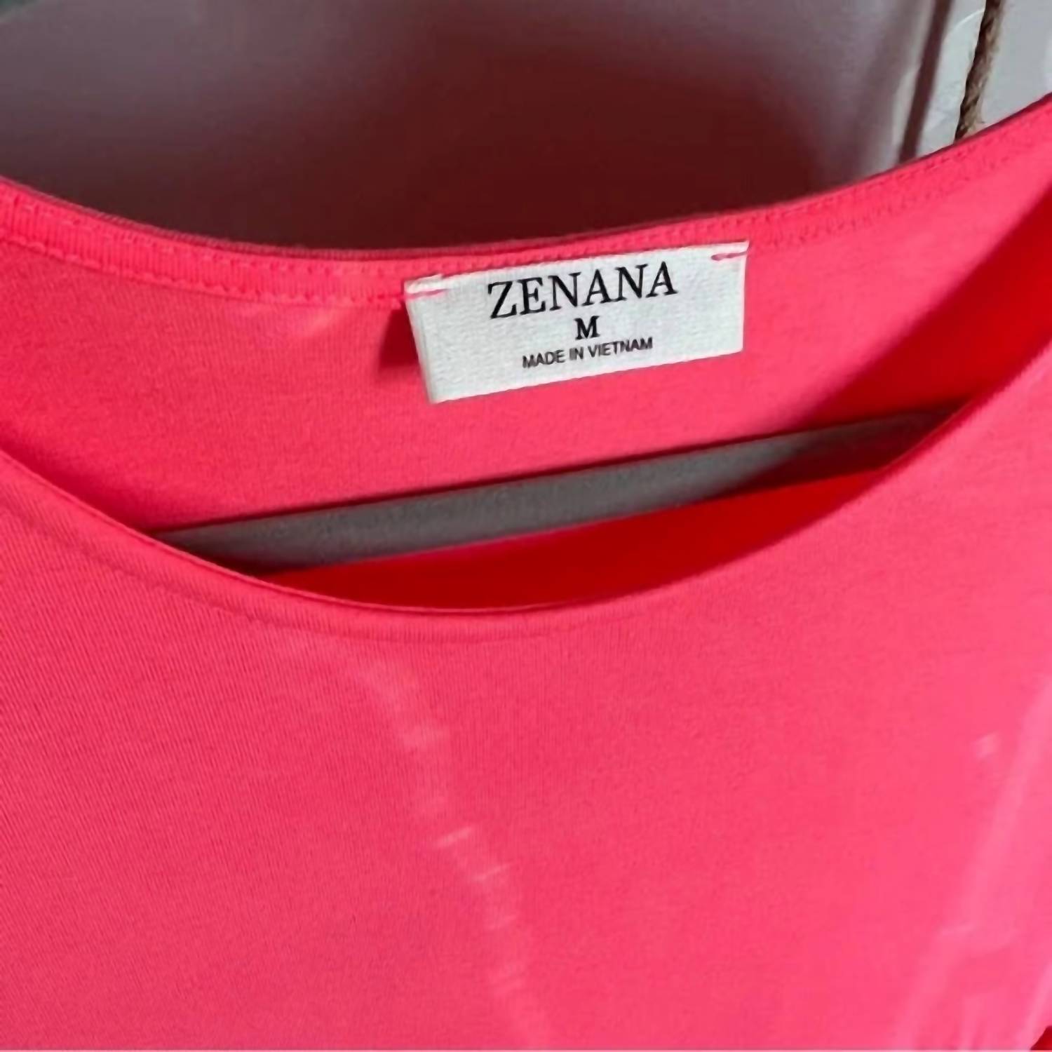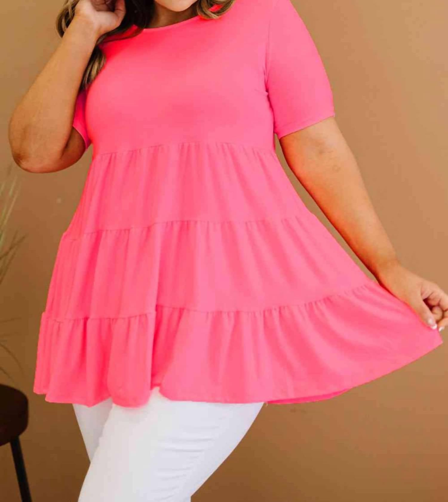 Great fit, cute design, soft fabric. You'll love everything about this long sleeve tee. Introducing the Women's Tiered Babydoll Tee by ZENANA, a charming addition in a vibrant coral hue. With its short sleeves and tiered design, this tunic features an oversized fit for ultimate comfort and style. Crafted from 57% polyester, 38% rayon, and 5% spandex, it offers a highly stretchy and flattering silhouette. This imported top has a convenient pull-on closure and requires machine wash cold with like colors and hang drying to maintain its quality. Available in sizes up to 3X, with bust measurements ranging from 34 inches to 46 inches and lengths from 27.5 inches to 30 inches.