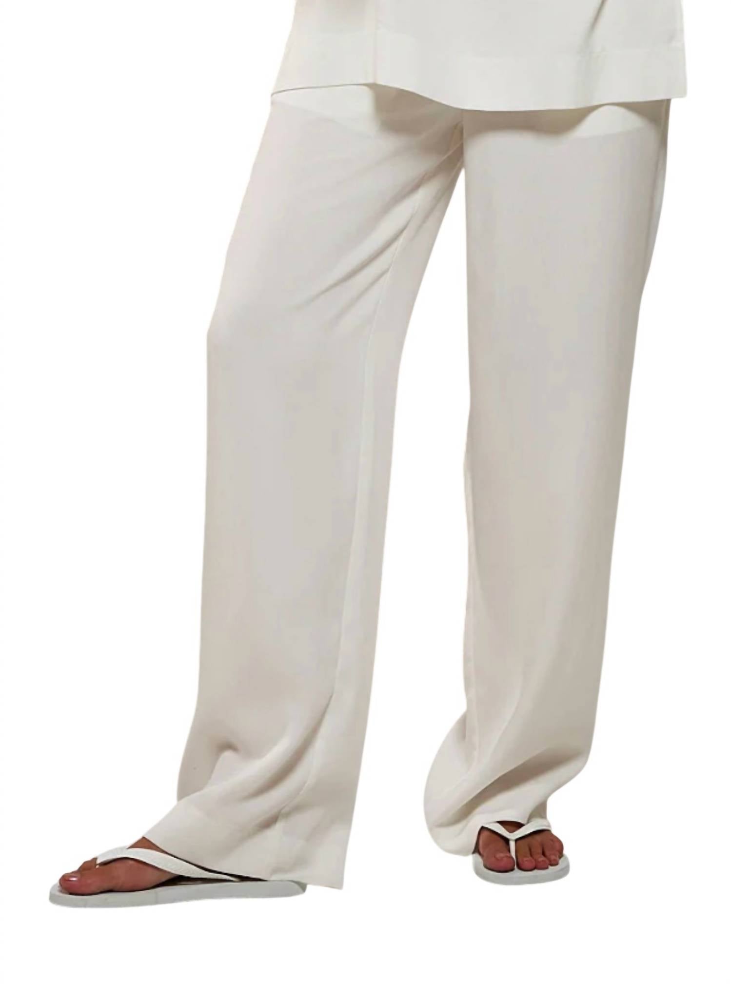 A set so cute you'll never want to take it off. Designed to look good while lounging, this little number is the perfect outfit for hanging at home in style. Introducing the Rosa Top And Pants Set by Raizz in sophisticated off-white, perfect for a chic dinner party or New Year's Eve celebration. This women's loungewear set, made from 100% Lyocell textured crepe, features a top with spaghetti straps, a square neckline, and an elongated shape, and pants with a high waist and a straight, fluid cut. Both the blouse and pants have invisible side zippers for a seamless finish, with the set including a matching belt for added charm and silhouette enhancement. Care for your garment with hand washing and ensure it stays fresh and refined for seasons to come.