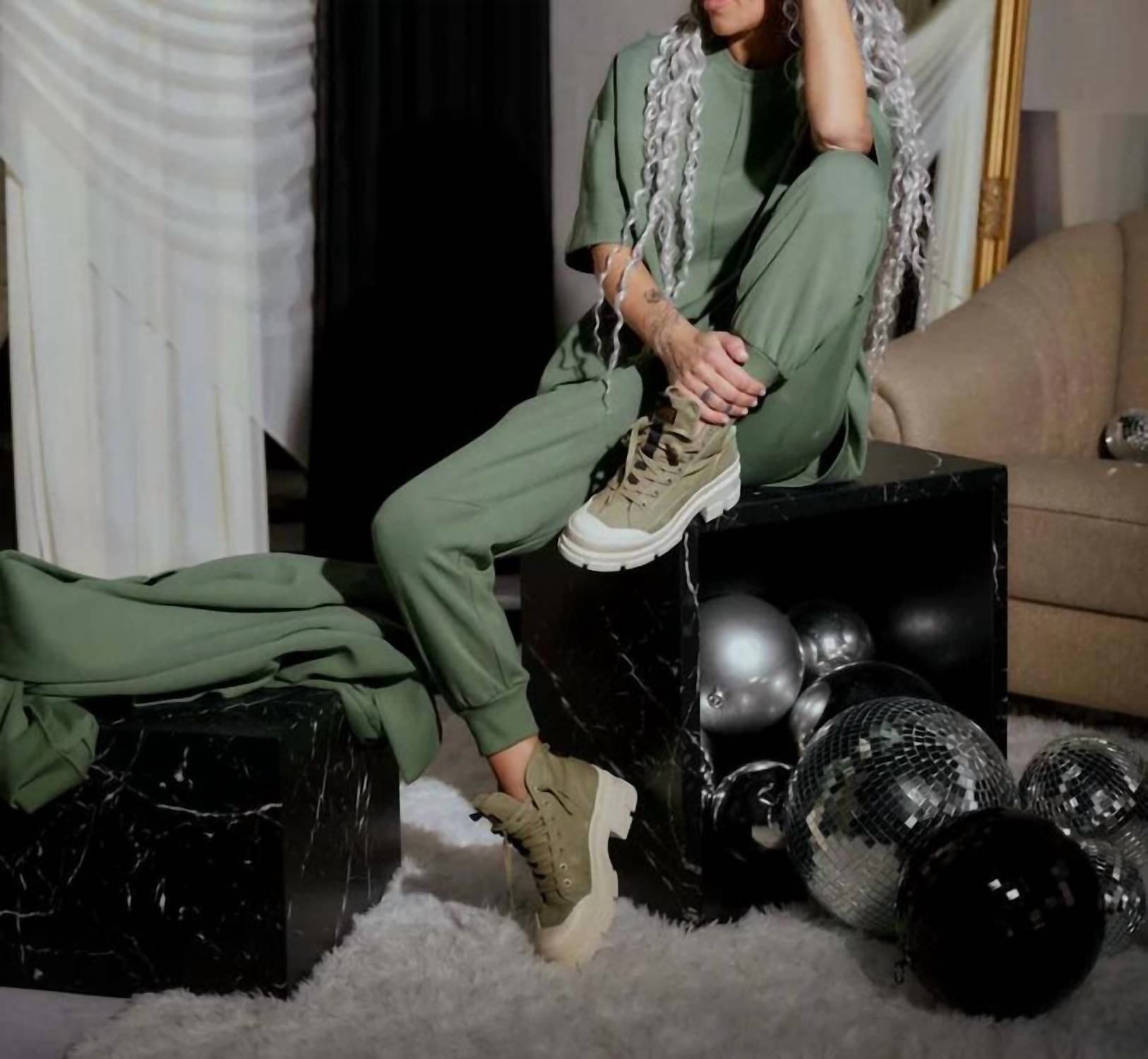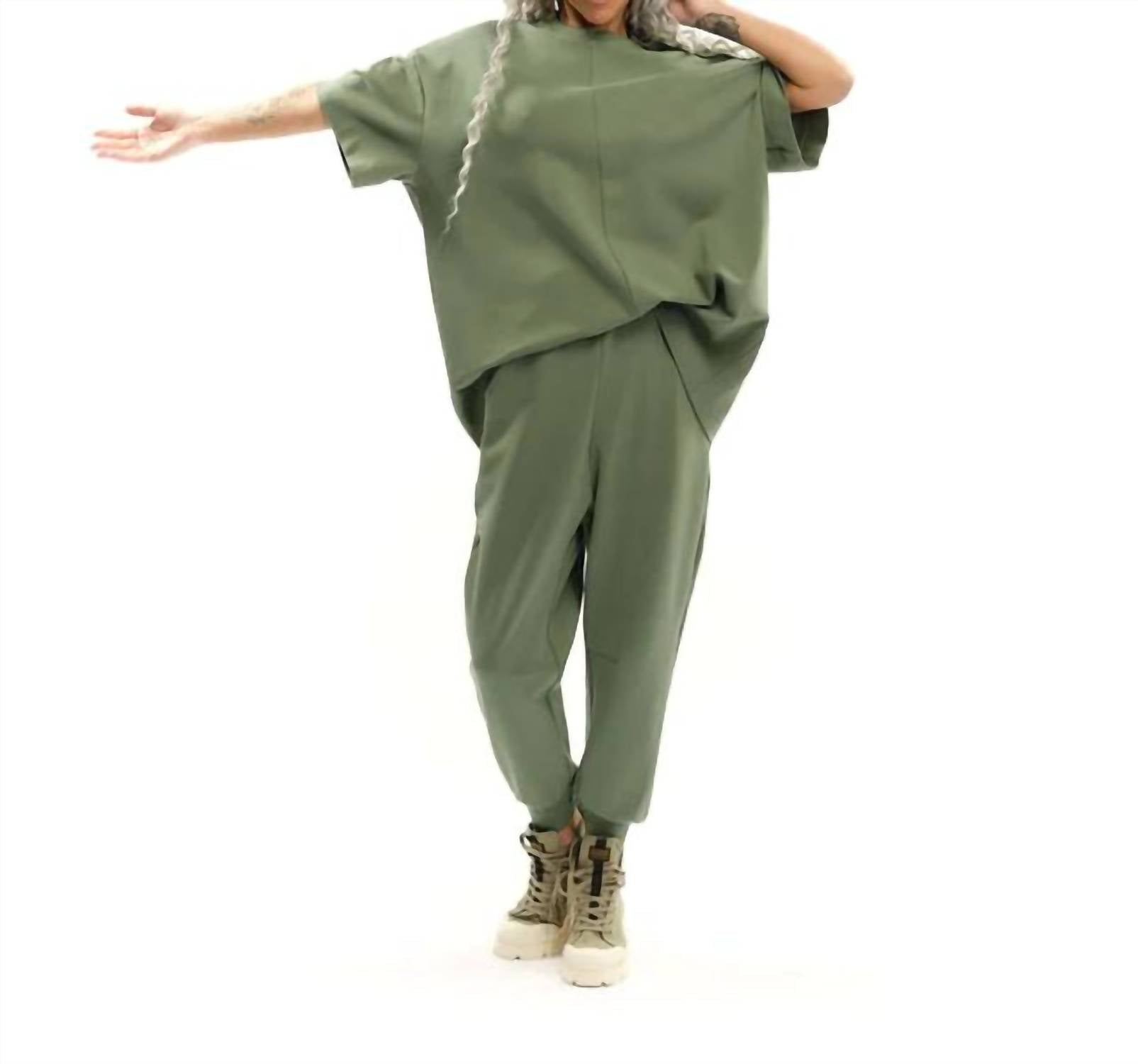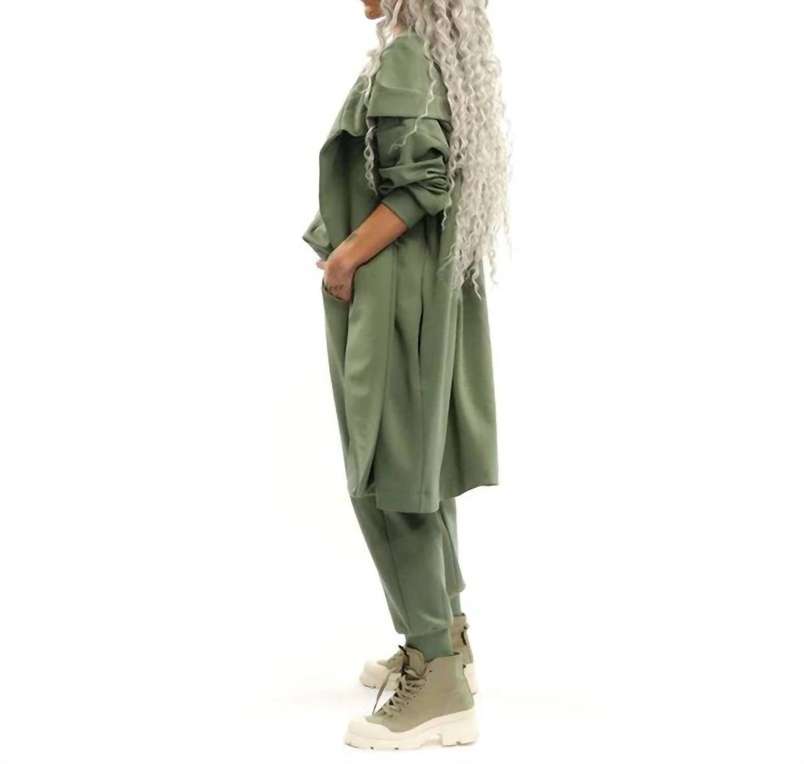 Experience ultimate relaxation with the Locker Room Three-piece Set Activewear Set in a calming sage tone, perfect for summer vacation or everyday athleisure. This women's set includes a short-sleeve boatneck top with an asymmetric button closure, a slouchy no-closure hoodie, and joggers, all offering a seamless blend of softness and structure. Crafted from 65% Cotton and 35% Polyester, these handmade pieces ensure comfort and durability. Care instructions recommend machine washing on cold with a mild detergent and line drying.