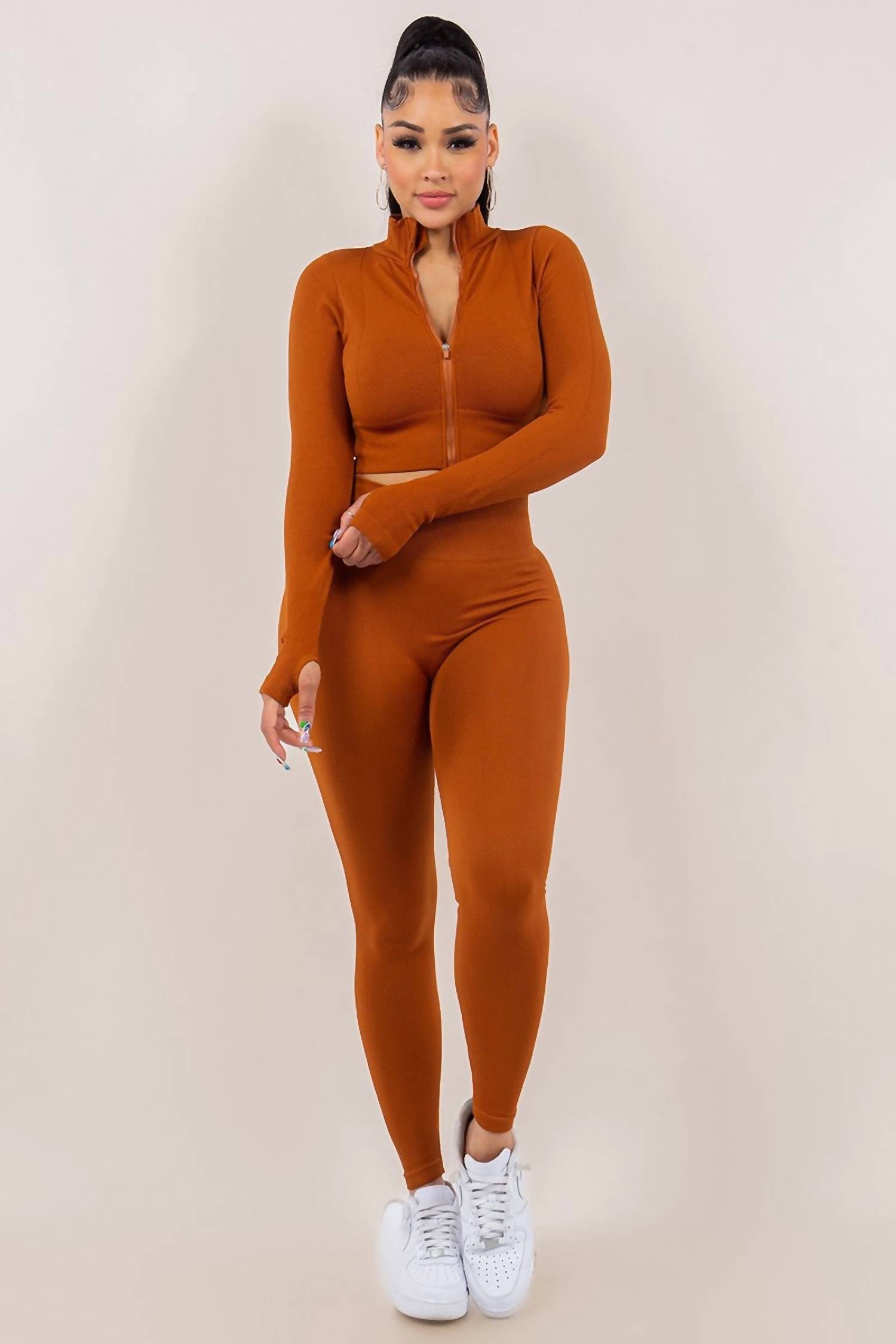 A set so cute you'll never want to take it off. Designed to look good while lounging, this little number is the perfect outfit for hanging at home in style. Elevate your athleisure wear with the Long Sleeve Top and Pants Loungin Set by Love Poem, crafted in a vibrant hue. This set features a long sleeve top with a chic mockneck and thumb hole detailing, paired with high waist active leggings for comfort and style. Made from a textured diamond patterned material, it blends 92% Nylon with 8% Spandex, ensuring flexibility and breathability. Whether you're working out or relaxing, this solid-patterned ensemble is perfect for women on the go.
