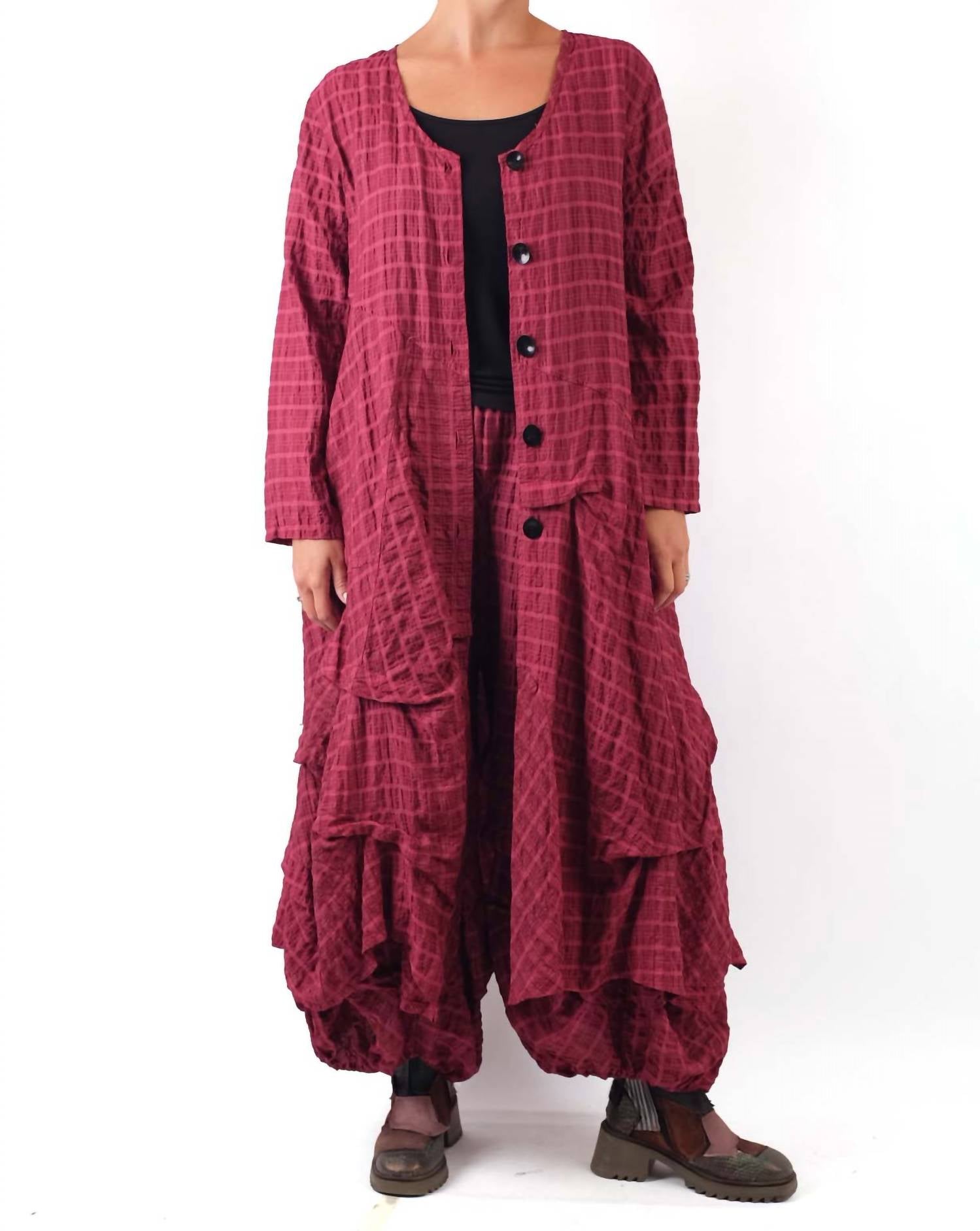 When comfort and style come together seamlessly. Embrace the transitional seasons with the Long Plaid Duster in Cayenne by Bodil, an epitome of chic layering. Designed with long sleeves and a timeless V-neckline, this duster is crafted in a blend of 63% Tencel, 19% Rayon, and 18% Nylon, ensuring a lightweight feel. Its plaid and check pattern makes it a standout piece over dresses, tops, and sets. With garment lengths varying from 48" to 50.5", this duster offers a flattering silhouette for every silhouette.