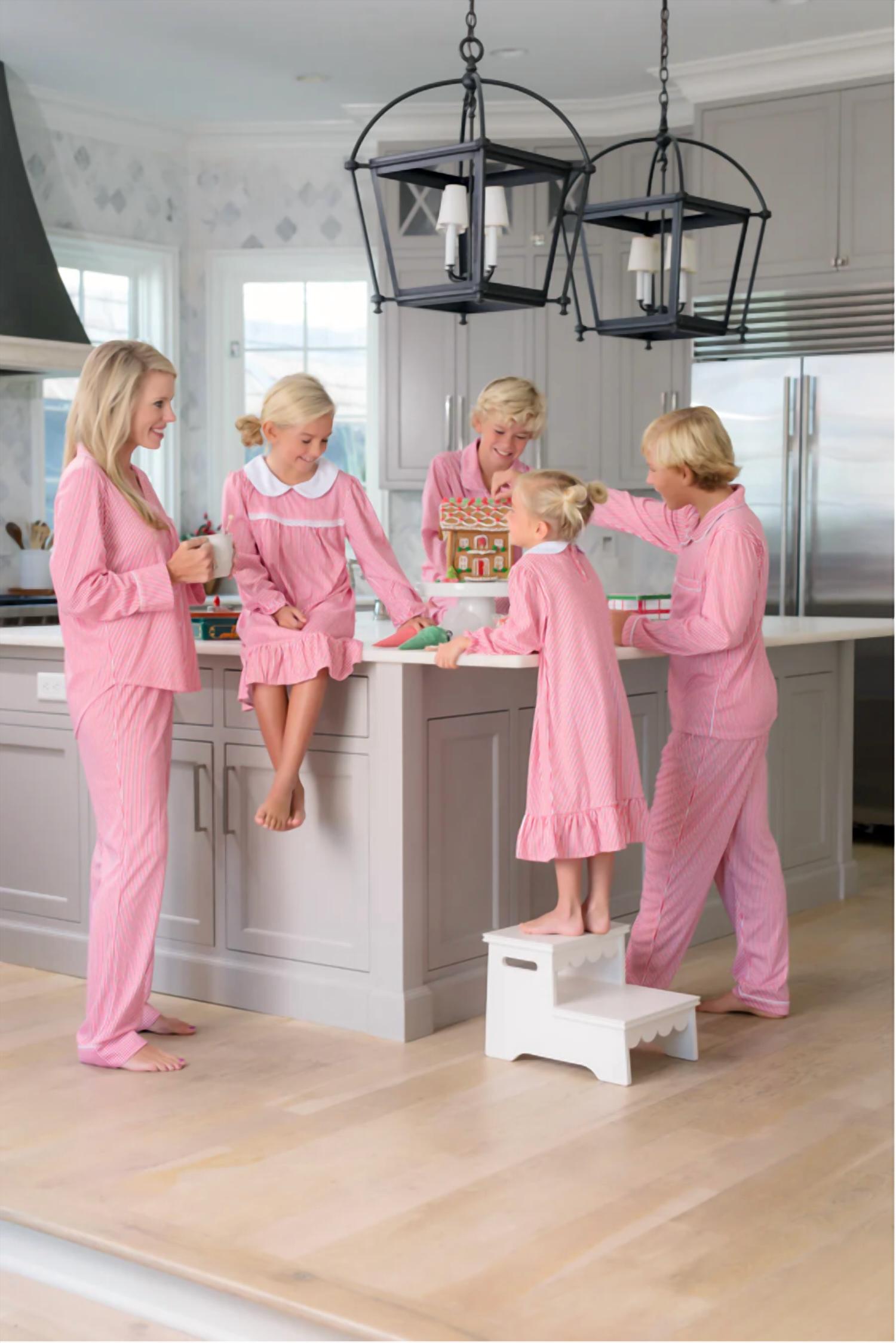 Loungewear doesn't have to be frumpy and this is exactly what we had in mind. Designed for a comfortable fit, this chic little number will be your favorite lounging-at-home look. The Women's Let Me Lounge Set by The Beaufort Bonnet Company is a stylish choice for relaxing during the fall season. Featuring long sleeves and a classic collar, this set comes in a delightful Richmond Red Stripe with Worth Avenue White Piping. Made from a comfortable blend of 97% Cotton and 3% Spandex, the top showcases a button-up closure and a chic pocket on the left chest, while the pants offer an elastic waistband with a drawcord for the perfect fit. Care is easy with machine wash and tumble dry instructions, making this set ideal for effortless wear.