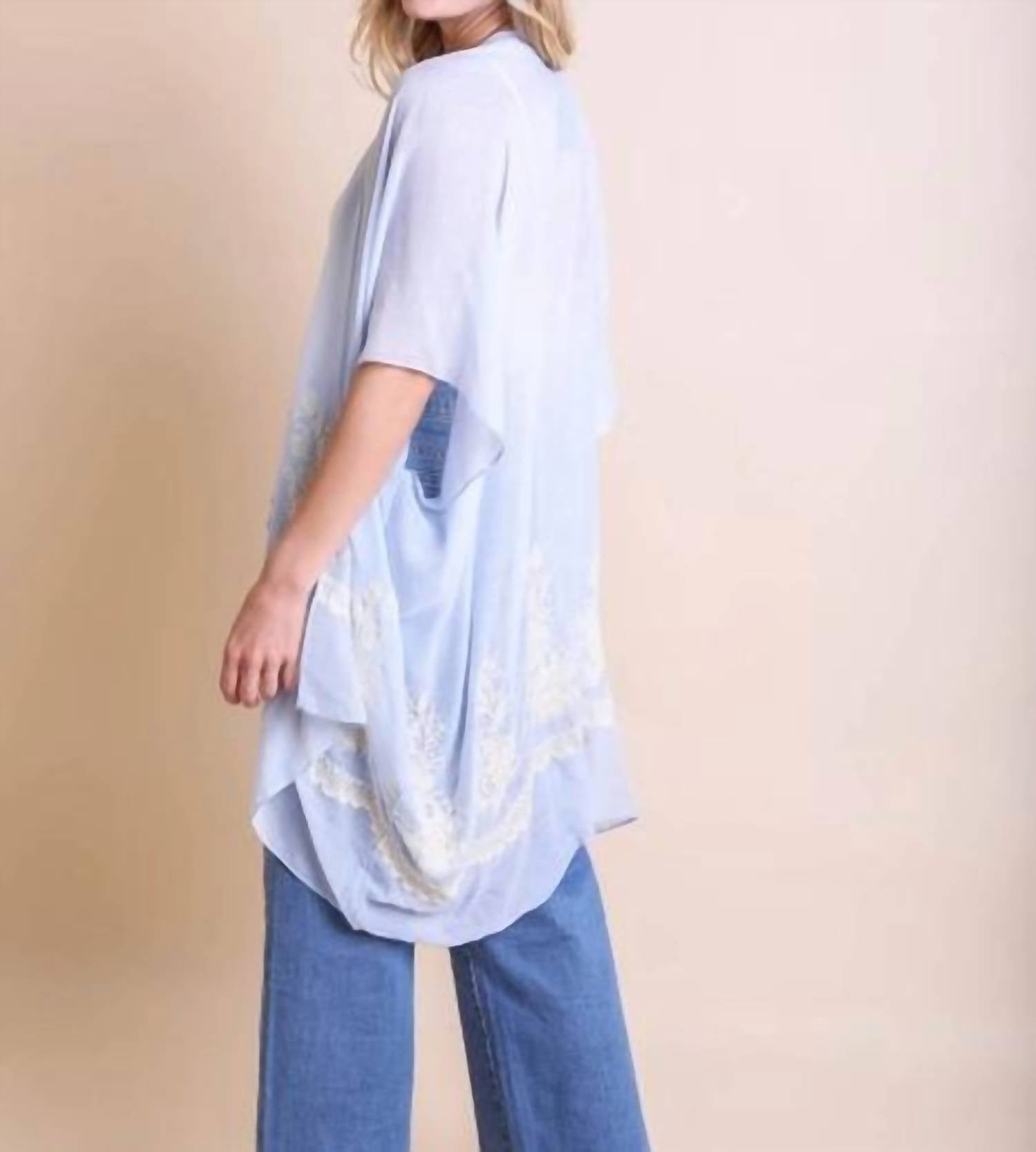 When comfort and style come together seamlessly. Elevate your festival look with the LETO Lightweight Floral Embroidered Tassels Boho Festival Kimono Wrap in blue. This exquisite piece features elbow-length sleeves and a captivating floral embroidery design. Made from 65% Polyester and 35% Viscose, this kimono offers a flowing silhouette with a length of 28.5 inches and a bust across of 44 inches, fitting most sizes from 0-18. With its V-neck and generous armholes of 8.5 inches, it's perfect for adding layered elegance to your outfit.