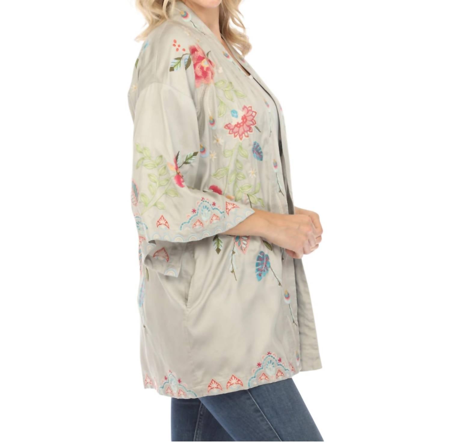 The perfect piece to lounge in, sleep in, and cook breakfast in. The Johnny Was Emika Kimono blends cozy comfort with effortless style. Made from breathable fabric, it features colorful floral embroidery on a solid base, an open front, relaxed fit, 3/4 sleeves, side pockets, and a hip-length hem. Made from 100% Lyocell. Machine wash cold and tumble dry low.