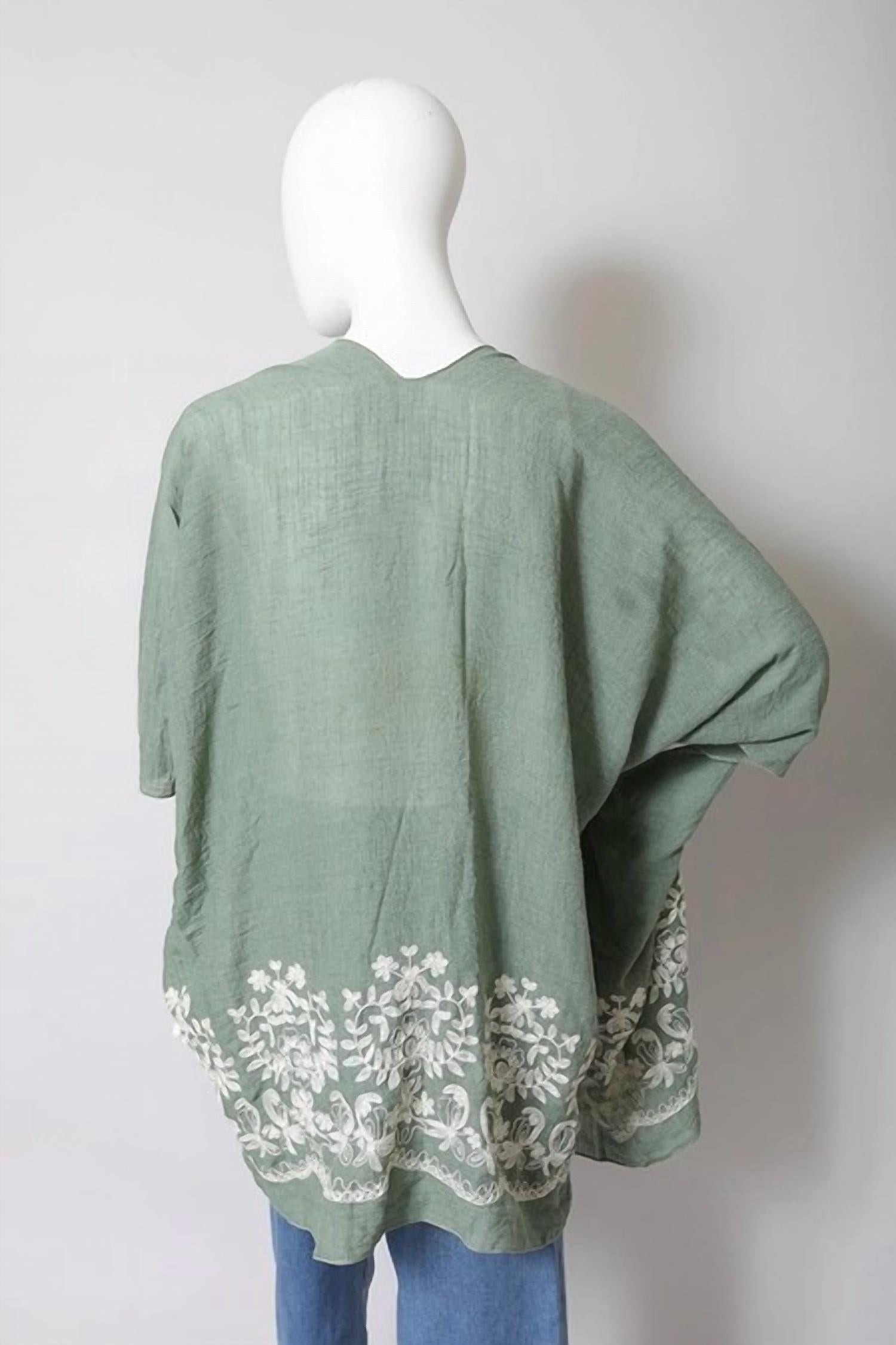 Leto - Women's Lightweight Floral Embroidered Tassels Boho Festival Kimono Wrap